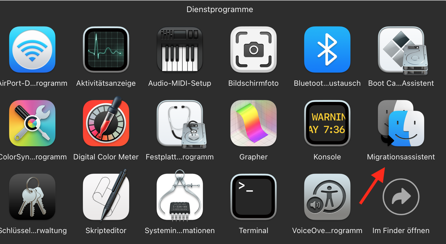 den Migrationsassistent solltest du bei den Dienstprogrammen finden