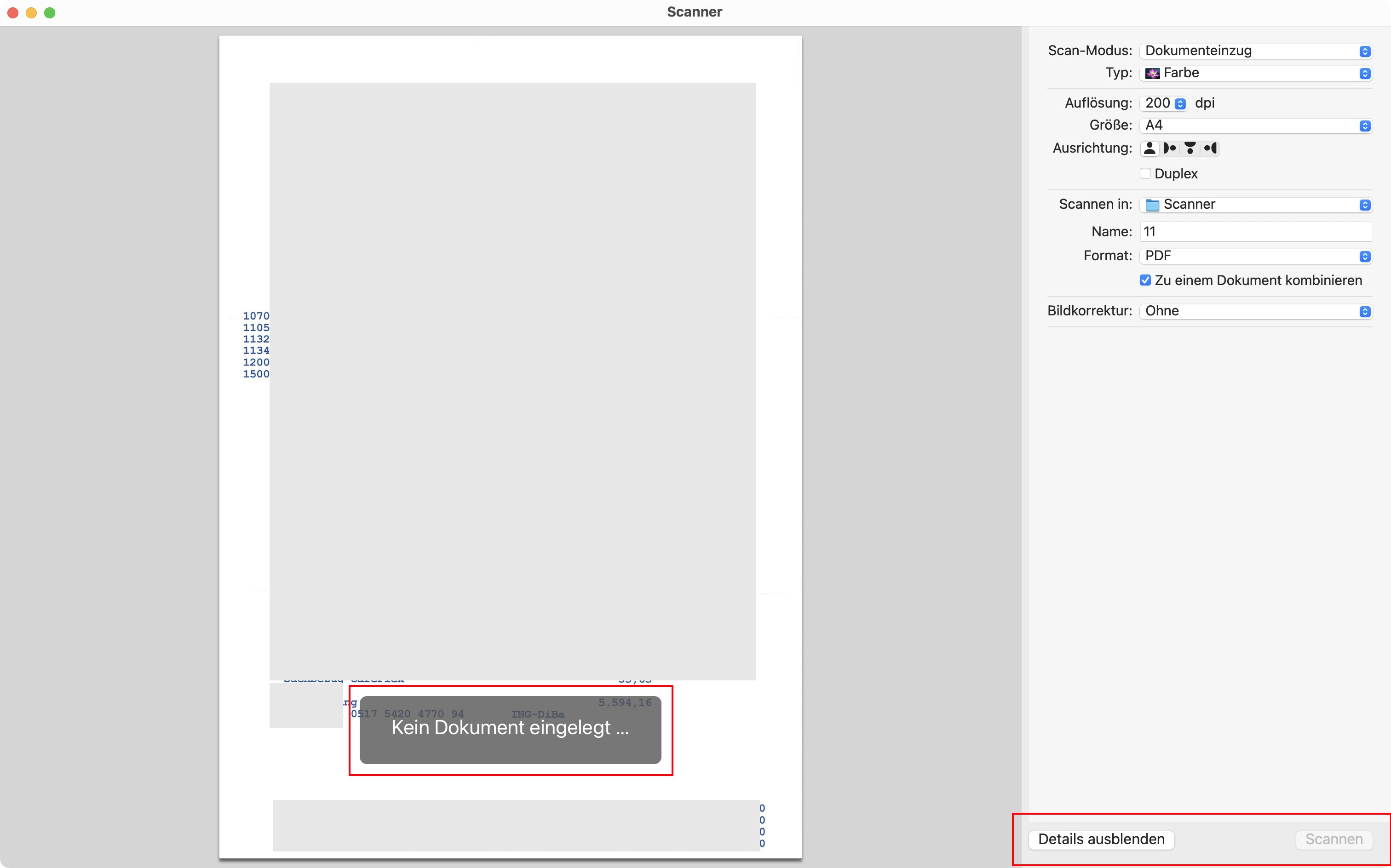Nach dem Start der Software (Scanoberfläche von macOS) scannt der Scanner direkt drauflos und nutzt sowohl die vorher genutzten Einstellungen als auch den vorher festgelegten Dateinamen - überschreibt also ein vorhandenes Dokument mit gleichem Namen - ohne dass ICH den Scan gestartet hätte.
