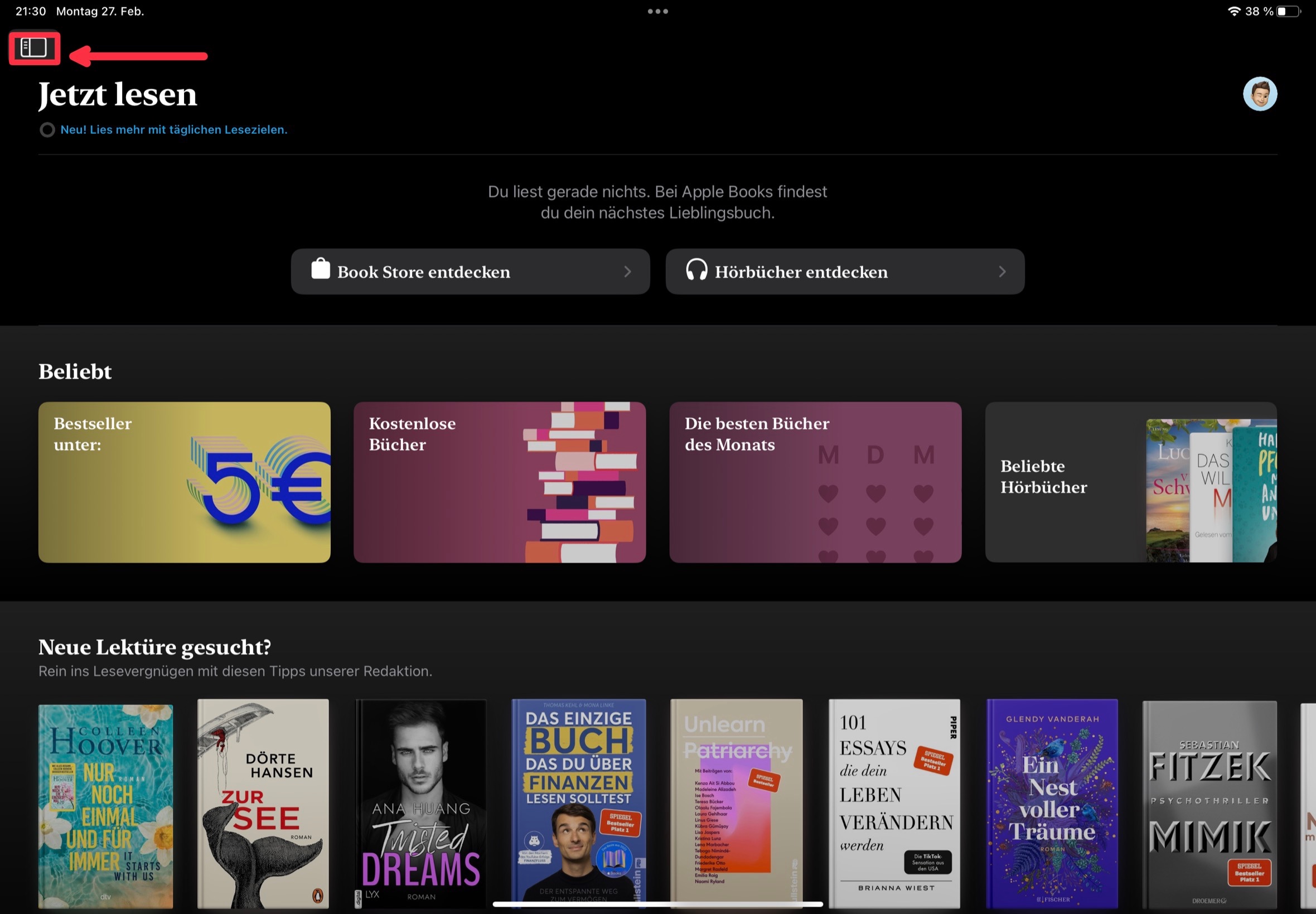 - Neustart der Bücher-App: Schließe die Bücher-App und öffne sie erneut, um zu sehen, ob das Lupen-Symbol zurückkehrt.