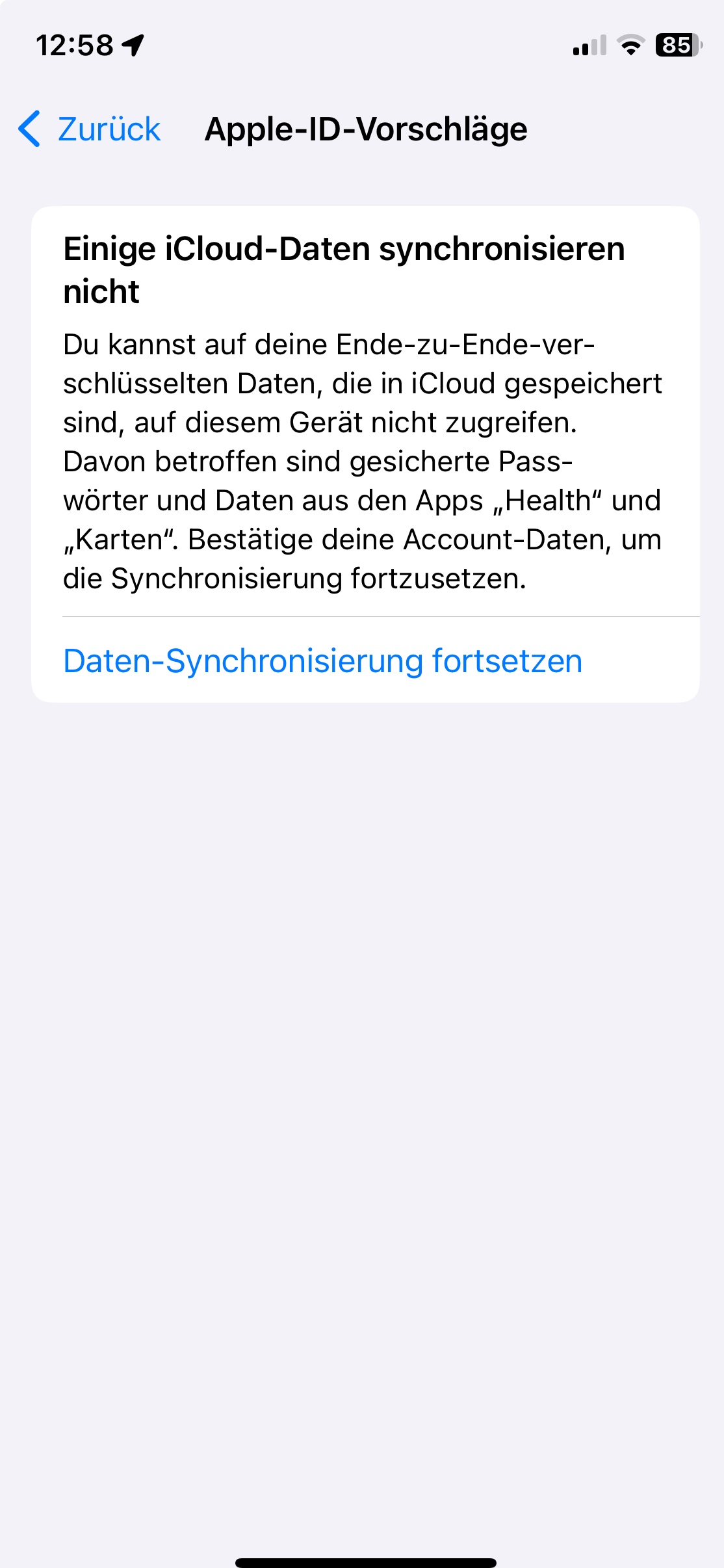 Health und Karten können nicht mit iCloud synchronisiert werden