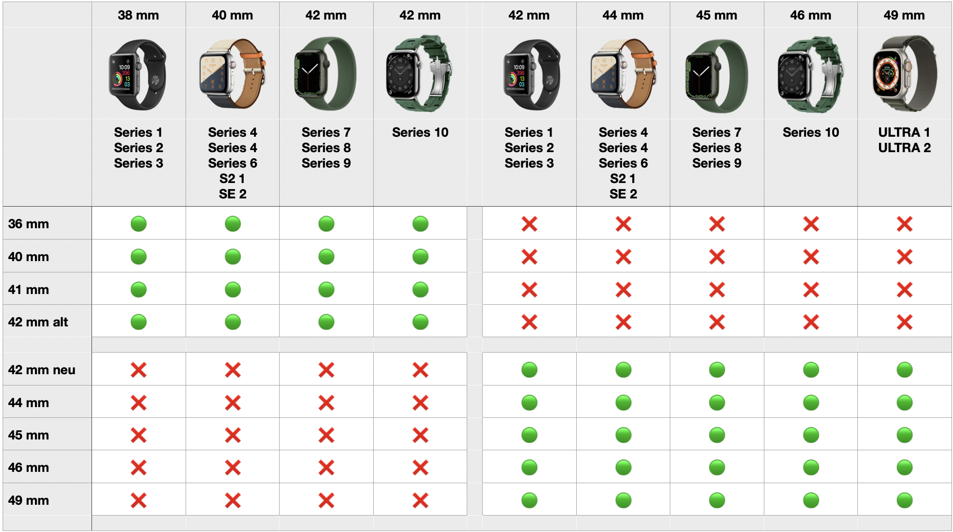 Hier siehst du eine Liste welches Armband mit welcher Apple Watch kompatibel ist: Welches Armband passt an die neue Apple W… - Apple Community
