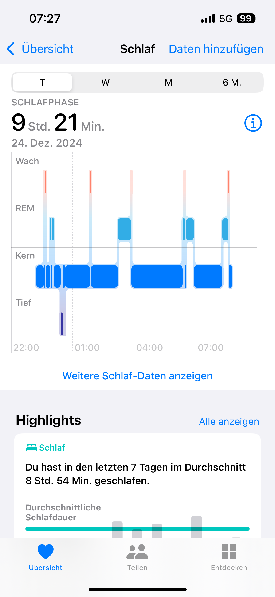 Meine Apple watch zeigt immer sehr wenig Tiefschlaf an. Meine „alte“ Apple Watch hat deutlich mehr Tiefschlaf angezeigt.