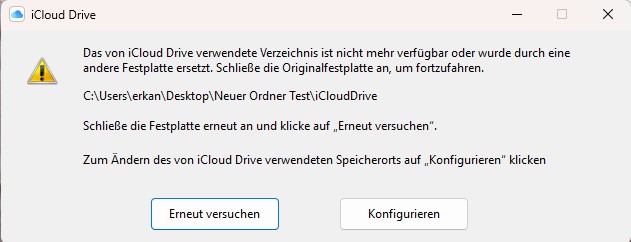 Jetzt bekam ich die Fehlermeldung, dass meine Cloud nicht aufzurufen sei und dann habe ich erneut den Ordner iCloud Drive von meinem Desktop verlinkt.