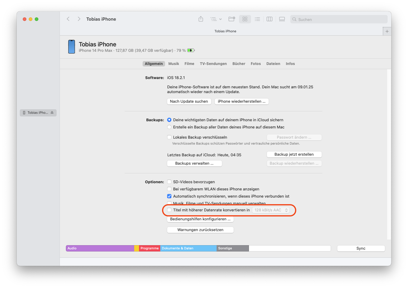 Unterschiedliche Dateigröße/Dateiqualität in iTunes vs. Musik App