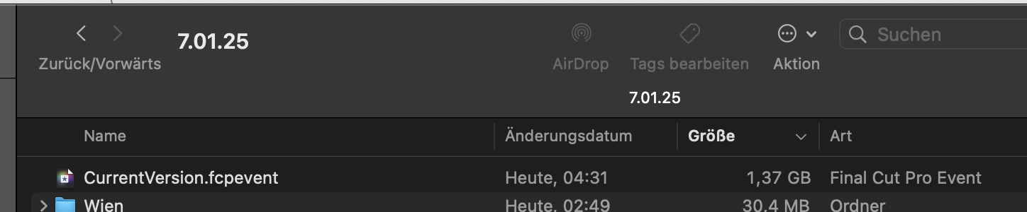 Meine wichtigste FinalCut Datei ist wesentlich größer als alle anderen. Das liegt an der CurrentVersion.fcpevent die man im Paketinhalt findet. In dieser einen Mediathek ist diese Datei 1.37GB groß. Bei der zweitgrößten FinalCut Datei ist CurrentVersion nur 23,9MB groß; in vielen Mediatheken sogar weit unter 1MB. Nicht nur die Differenz ist sehr auffällig, die besagte Datei ist auch extrem langsam.