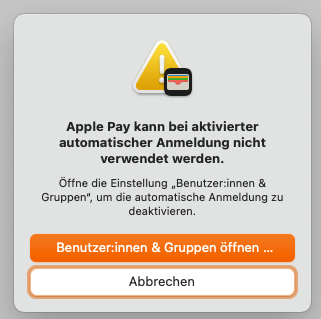 Apple Pay mit Safari auf Mac mini funktioniert nicht