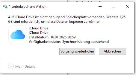 iCloud drive angeblich voll obwohl noch 1,8 TB als frei angezeigt werden