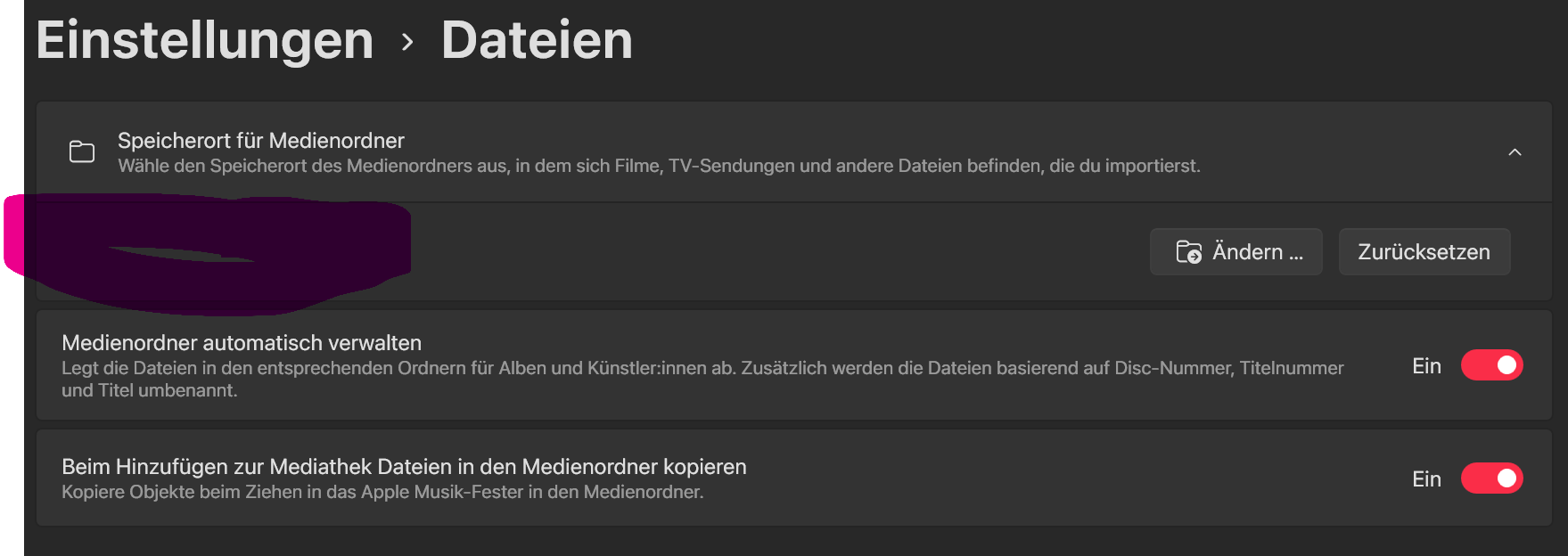 In den Einstellungen läßt sich kein Speicherort der Mediathek anzeigen oder ändern!