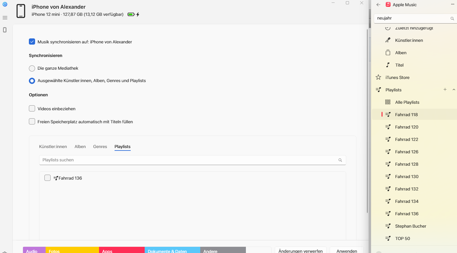 Synchronisieren von Musik mit iPhone 12 mini nicht möglich