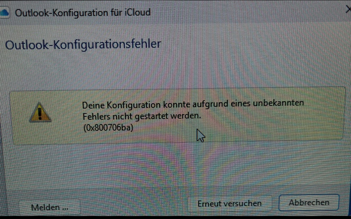 Nein, ich habe ICloud für Windows heruntergeladen und dann Kontakte und Kalender mit Outlook synchronisieren auf ein gestellt. Danach wird alles synchronisiert und dann kommt der abgebildete Fehler