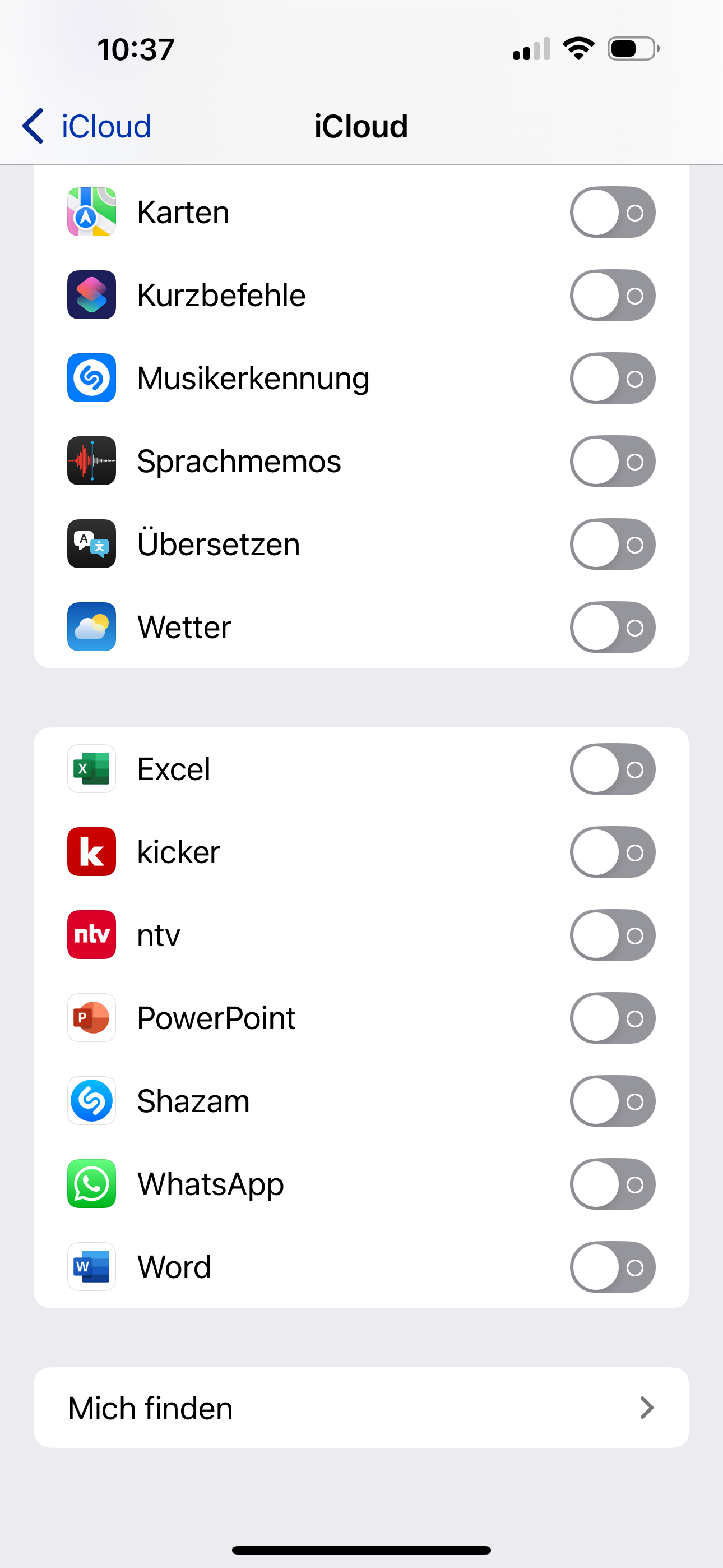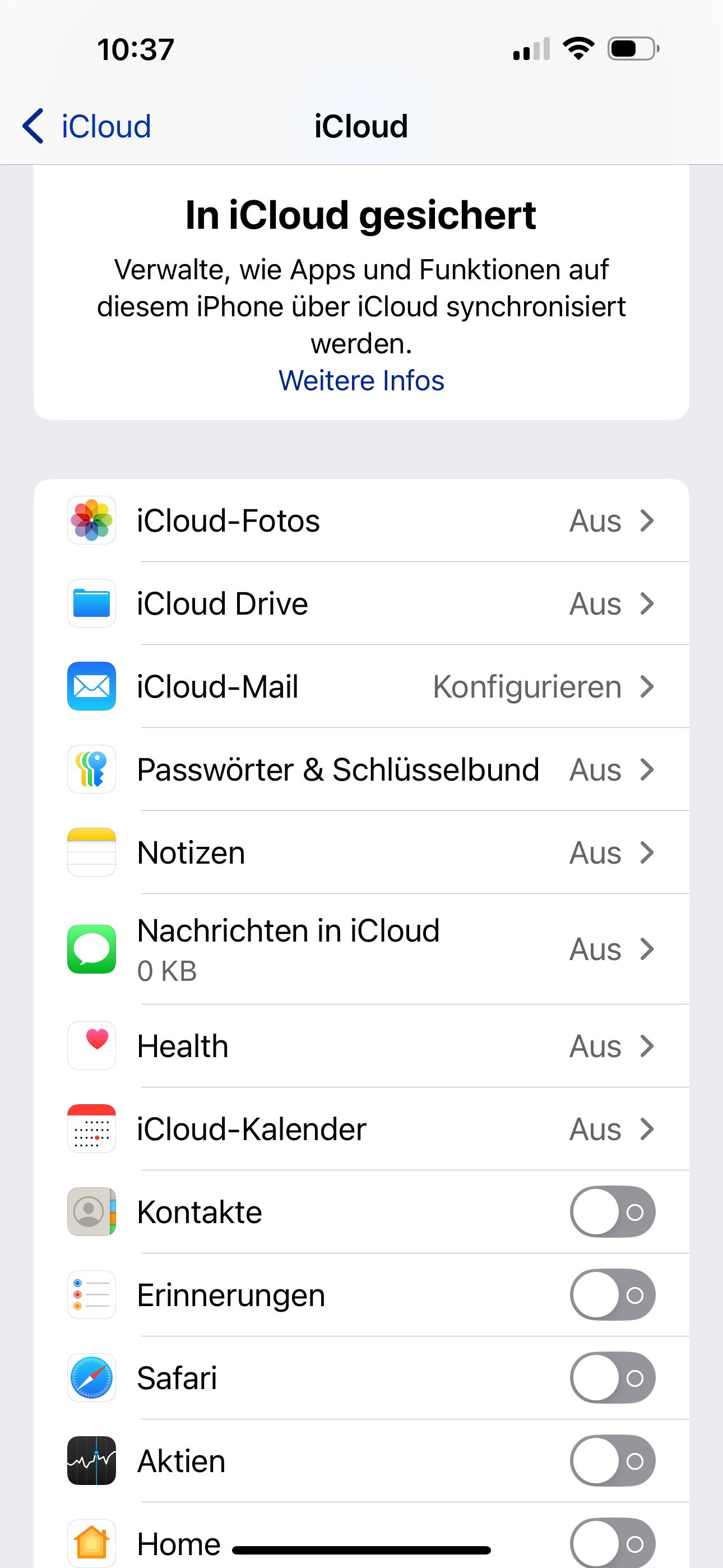 Es sind auch keine Apps in ICloud gesichert.