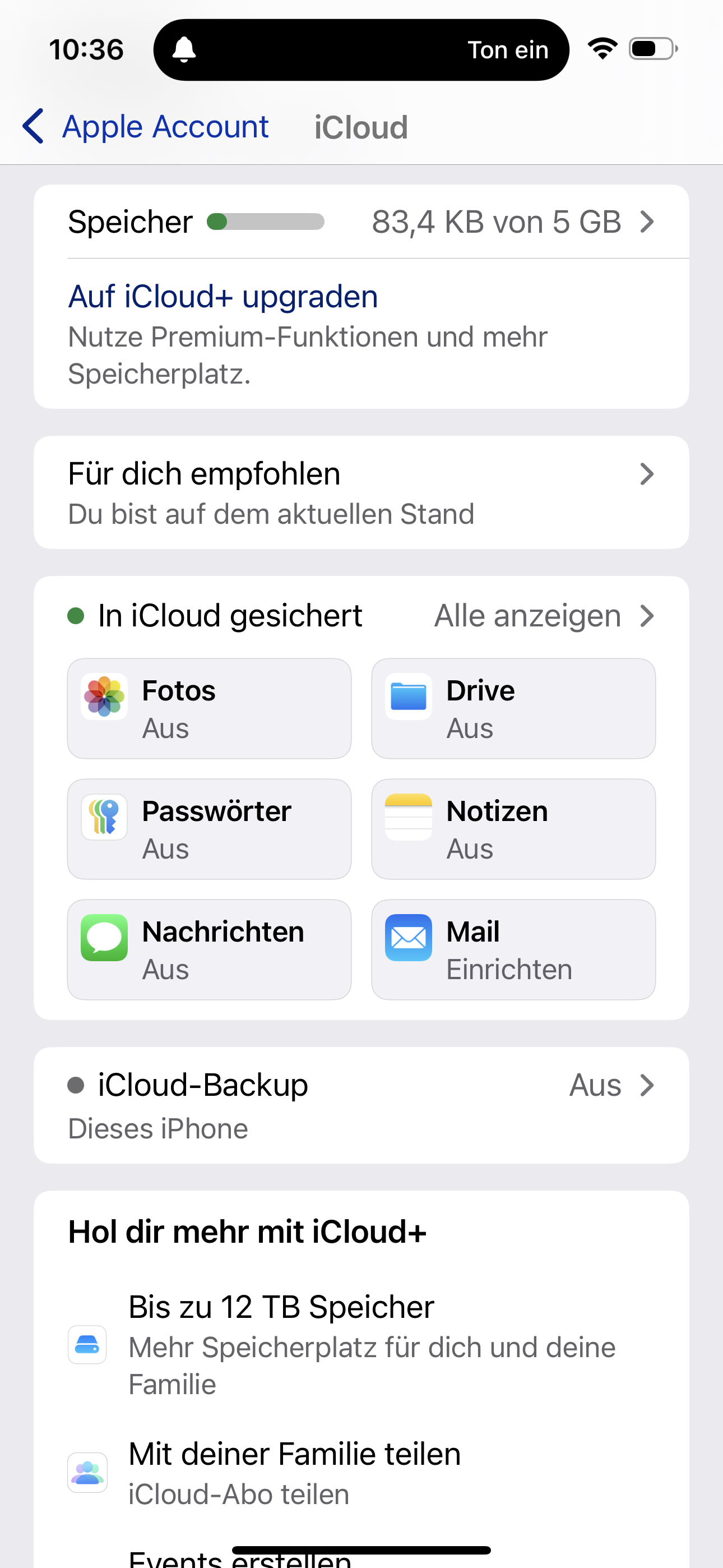 in meinem ICoud Speicher werden 83,4 KB als genutzt angezeigt.