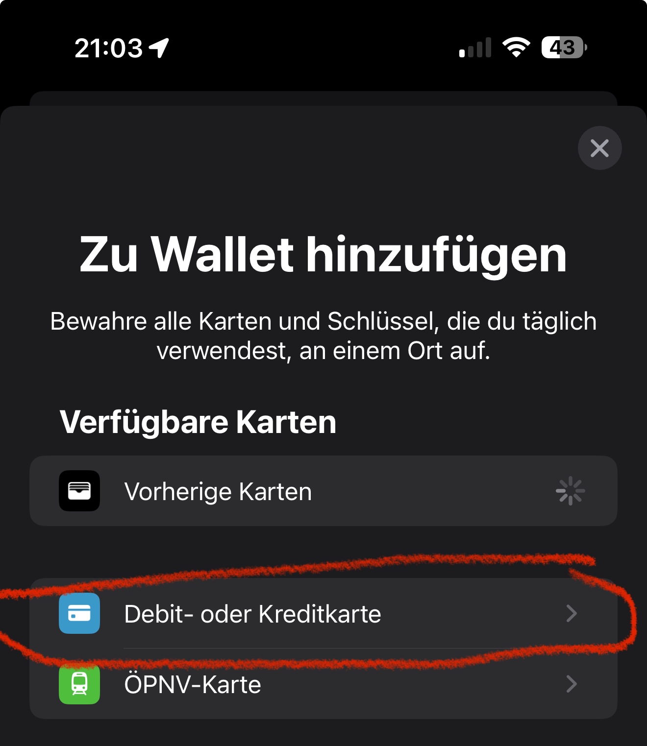 Das hilft auch bei Karten wo man keine App hat, die vorrige Karten Hinzufuegen funktion ist oft nur bei "echten" Kreditkarten eine Option. Neu Einrichten ist tatsächlich problemloser