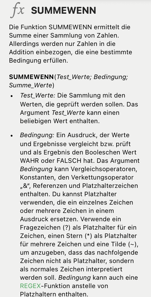 Sofern du die für dich relevanten Kriterien dort findest (z.B. Einfärbung aller Zellen, deren Inhalt größer/gleich x ist), kannst du diese Kriterien dann auch verwenden, um nach o.g. Muster (SUMMEWENN) eine Additions-Formel zu bauen, die dann nur die Zahlen addiert, die du (zusätzlich) über die Bedingte Markierung... eingefärbt hast.
