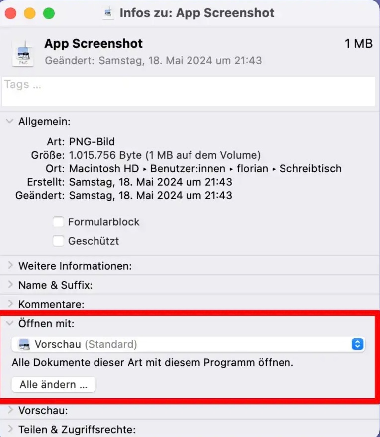 ...mache einen "Rechtsklick" auf die PDF-Datei, im Menü dann "Information" zu der Datei öffnen, und in dem sich dann öffnenden Fenster unter "Öffnen mit:" die "Vorschau-App" auswählen...: ...dann werden alle PDF-Dateien zukünftig automatisch mit der "Vorschau-App" geöffnet...