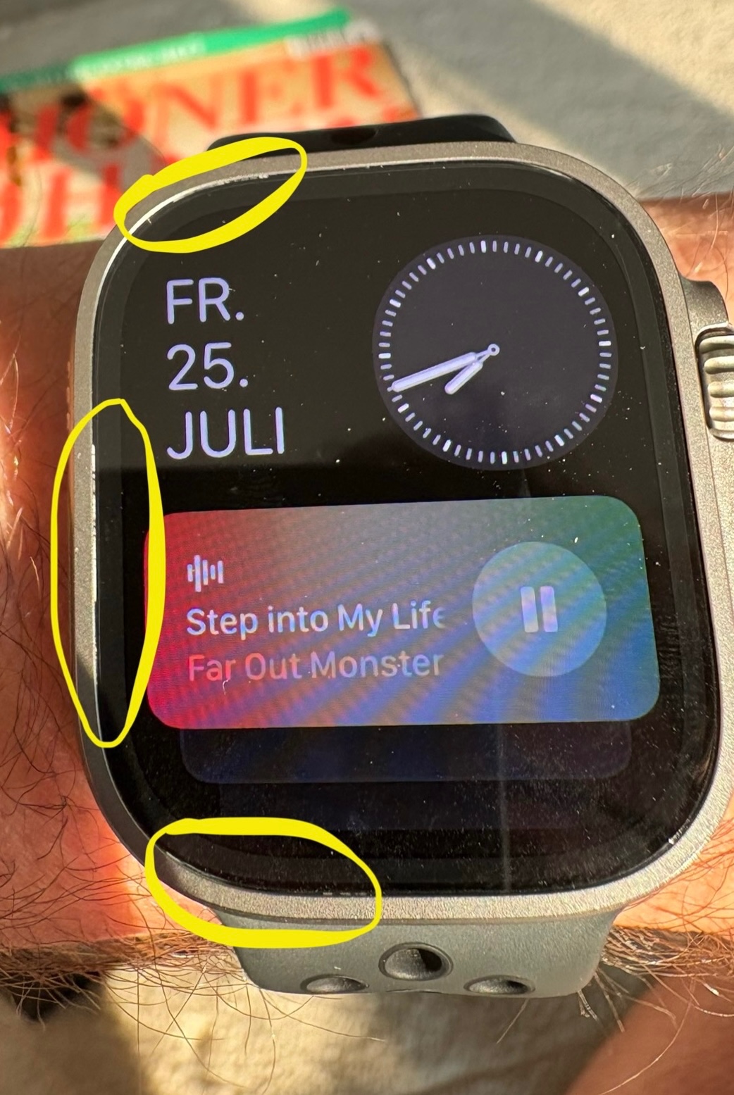 Leider ist in dem Zwischenraum zwischen Display und Gehäuse Zahnpasta gekommen.
