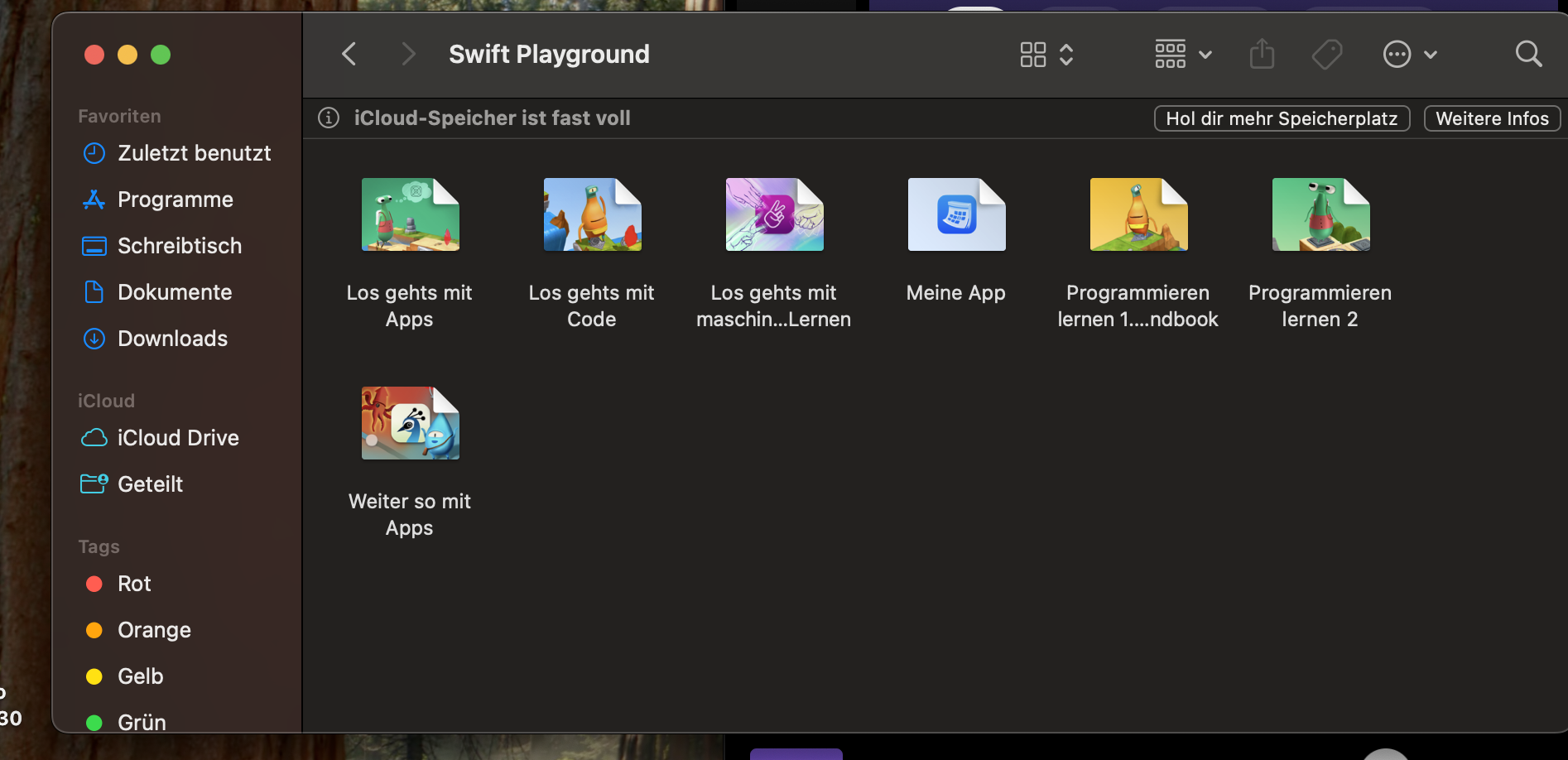 Wenn Du die Swift-Playgrounds-Projekte auf Dein MacBook überträgst und alles gespeichert ist, kannst Du sie anschließend aus iCloud löschen. So bleiben Deine Projekte erhalten, und die iCloud wird entlastet.