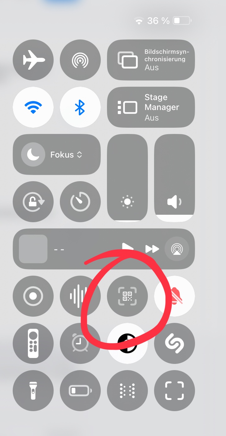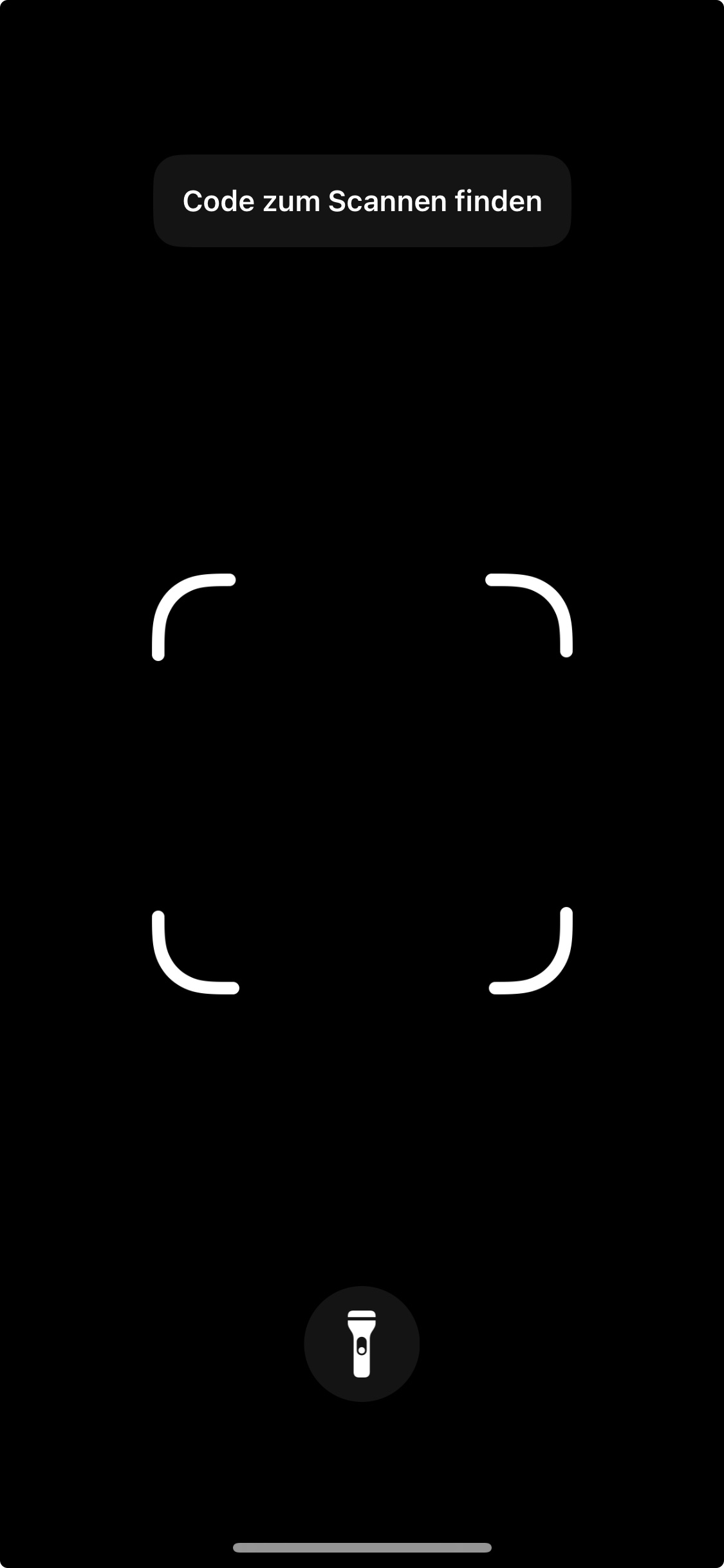auf meinem iPhone 12 mini mit iOS 18.5 zeigt der interne Codescanner, der über das Kontrollzentrum aufgerufen werden kann nur einen schwarzen Bildschirm mit weißer Ausrichtungshilfe und der Steuerung für die Taschenlampe (s. Bild unten), ohne das Kamerabild anzuzeigen. Natürlich funktioniert das Scannen von normalen QR Codes mit der Kamera App genauso und in meinem Fall auch erfolgreich. Da aber Apps wie zum Beispiel der DB Navigator oder meinetwegen der Signal Messenger beim Koppeln von iPad oder Mac auch auf diesen internen Codescanner (mit weißer Ausrichtungshilfe und Taschenlampen Icon) zugreifen, nützt es nicht viel, dass man mit der Kamera App QR Codes scannen kann.