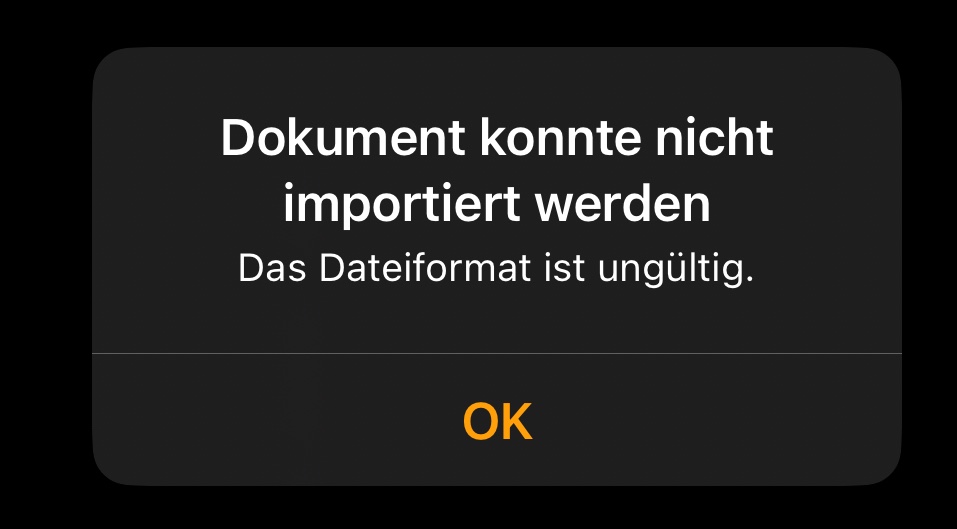 Auch das Anlegen einer neuen Pages Datei funktioniert nicht auf dem iPhone, solange als Speicherort der Drittanbieter Speicher gewählt ist. Siehe Screenshot 2 - es erscheint eine Fehlermeldung und Pages stürzt mit Black Screen auf dem iPhone ab. Die Datei selbst wird allerdings auf dem Speicher erzeugt! Und diese lässt sich beispielsweise auf dem Mac auch öffnen aus dem Drittanbieter Cloud Speicher heraus. Nur eben auf dem iPhone nicht. Das ist schon sehr seltsam. Kennt jemand dieses Verhalten oder hat bestenfalls sogar eine Lösung parat? Ich möchte meine Pages Dokumente im Web.de Cloudspeicher ablegen und sowohl auf Mac als auch iPhone bearbeiten. Leider funktioniert das nur auf dem Mac. Beim iPhone muss ich die Datei immer vorher über die "Dateien" App vom Cloud Speicher aufs iPhone übertragen, um dann mit Pages öffnen zu können. Das ist schon ziemlich umständlich.