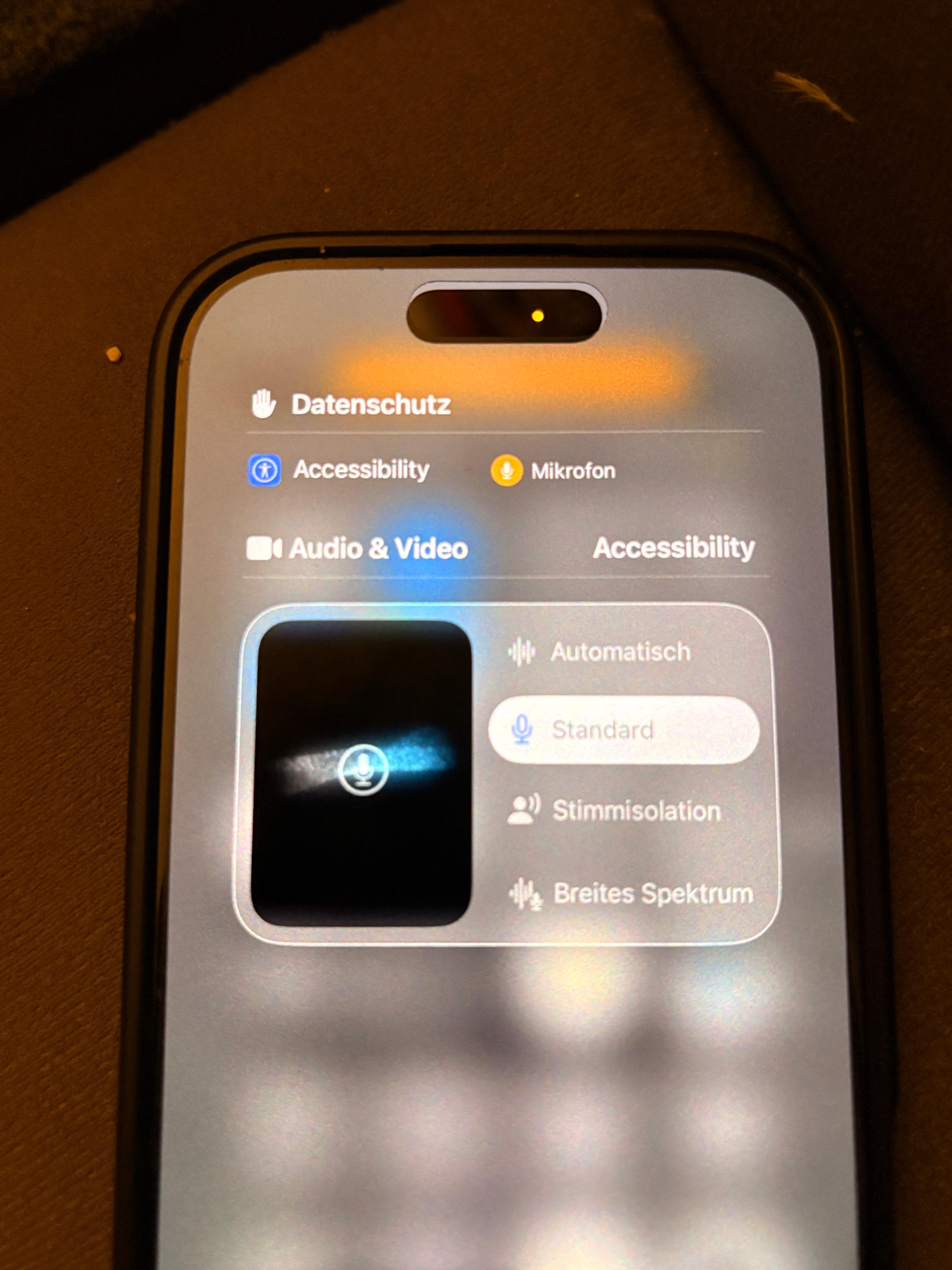 Wie kann ich die Mikrofon-Modus-Anzeige (Standard / Stimmisolation / Breites Spektrum), die während Anrufen oder bei Apps mit Mikrofon erscheint, dauerhaft deaktivieren?“