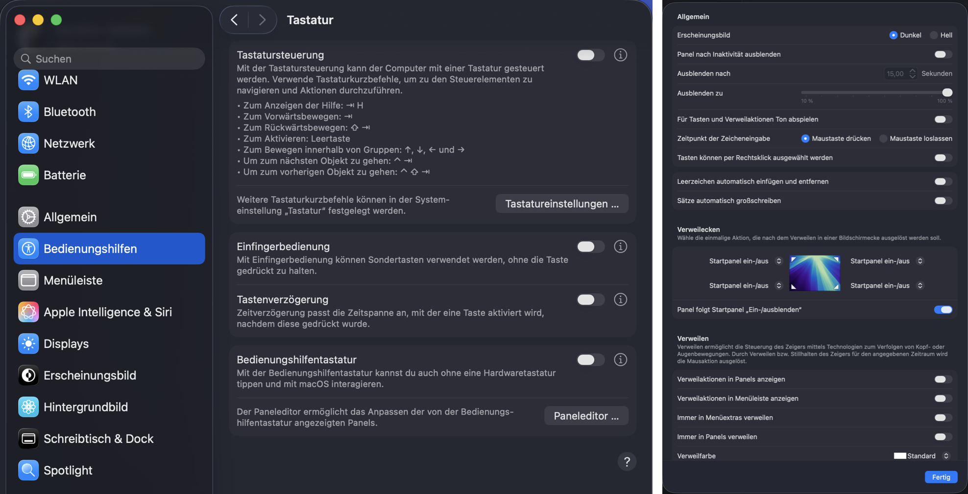 macOS Tahoe – Bedienhilfen-Tastatur unsichtbar, aber weiterhin klickbar