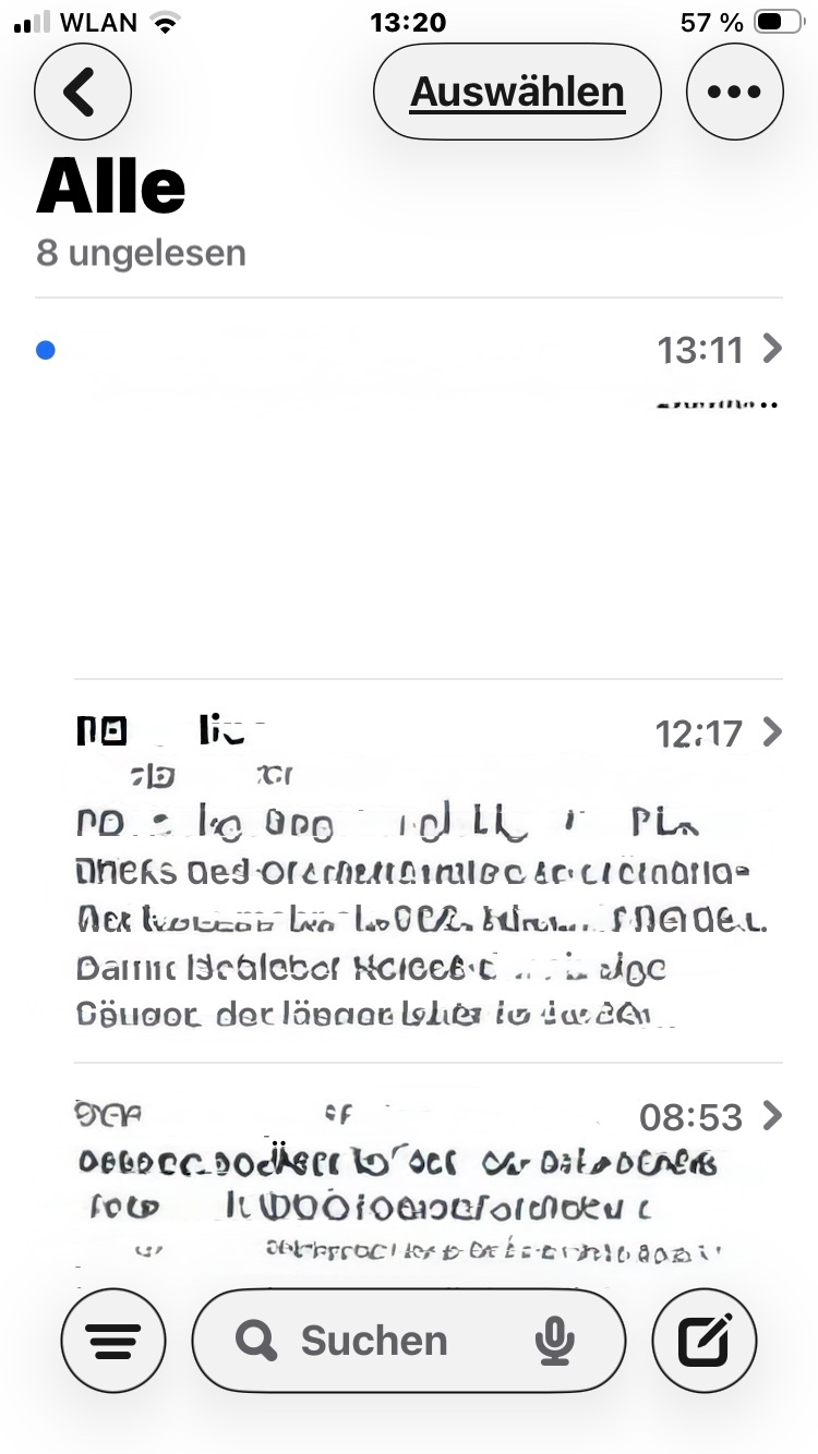 Sinnvoll ist auch die Funktion „Rahmen einblenden“ unter Bedienungshilfen - Anzeige und Textgröße. Hiermit bekommen die Befehlstasten einen Rahmen und schweben nicht mehr in der Transparenz. Bei e-mail Eingang sieht das z.B. so aus und in der Lister der Kontakte ist das z.B. Suchfeld umrandet.