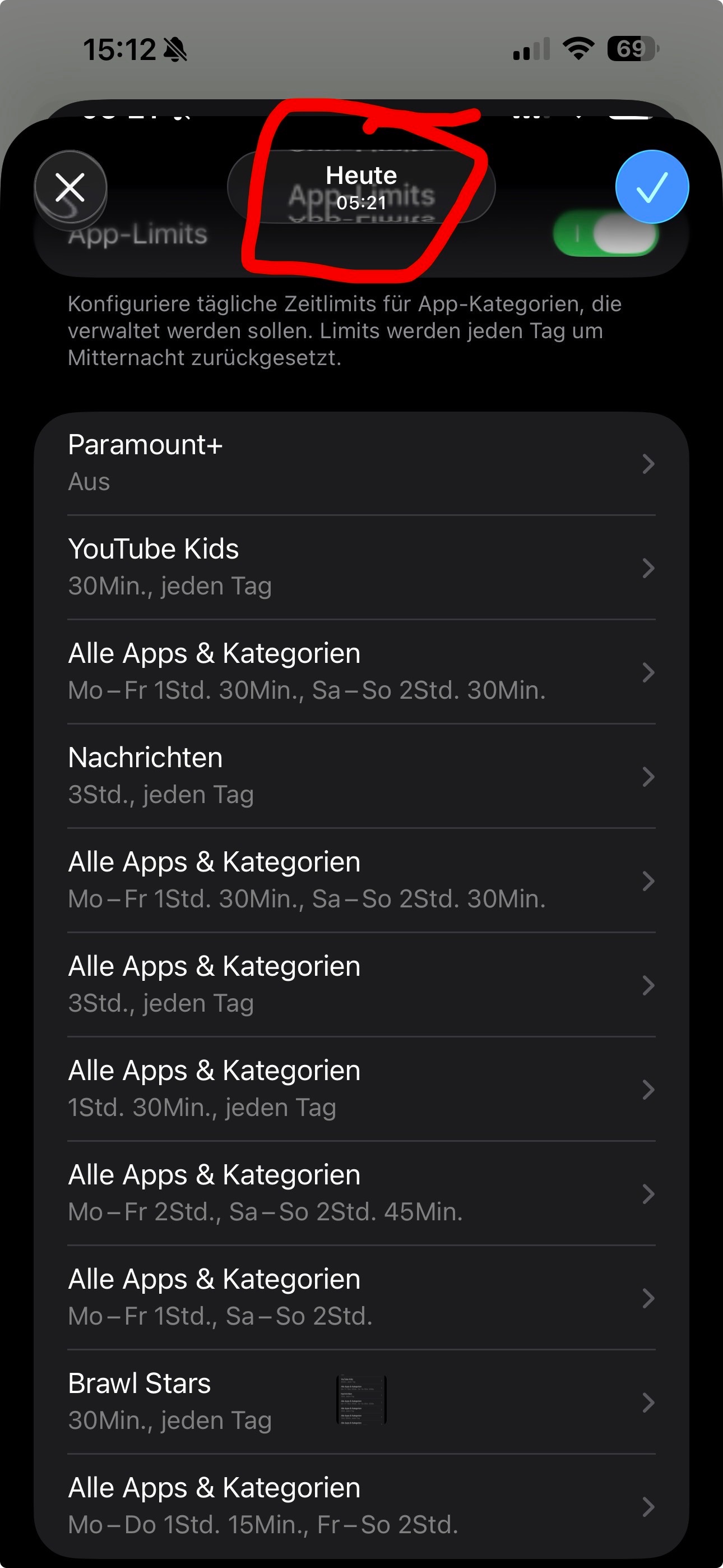 Heute habe ich die Einstellungen auf ein paar wenige Apps eingestellt und kurze Zeit später waren wieder irgendwelche neuen App Limits in der Liste.