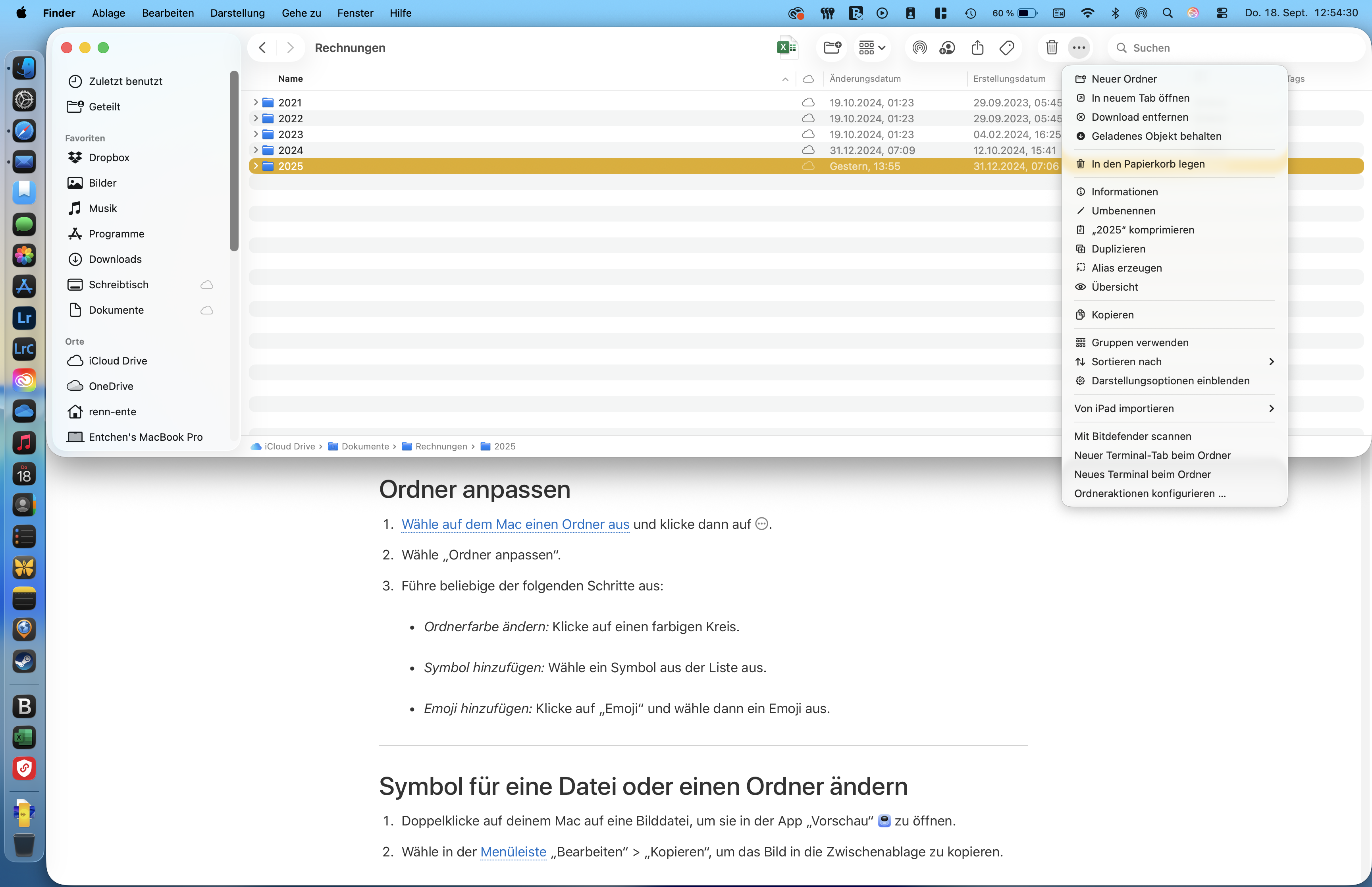 Einige Nutzer, so meine Recherche, berichten, dass die Funktion „Ordner anpassen“ erst dann erscheint, wenn im Finder mindestens ein Tag verfügbar ist. Sind keine Tags oder Markierungen eingerichtet, blendet macOS die Option aus.