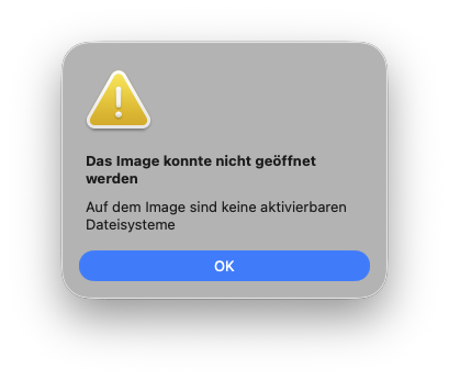 Das verschlüsselte sparseimage habe ich vor mehreren Jahren angelegt. Es befindet sich im Dokumente Ordner auf meinem Mac und konnte unter den vorherigen macOS Versionen bis zum aktuellen Update ohne Probleme geöffnet werden. Jetzt unter macOS Tahoe werde ich nach einem Klick auf das sparseimage nach der Passphrase gefragt und danach erscheint eine Fehlermeldung, dass das Image nicht geöffnet werden kann, da keine aktivierbaren Dateisysteme enthalten sind.