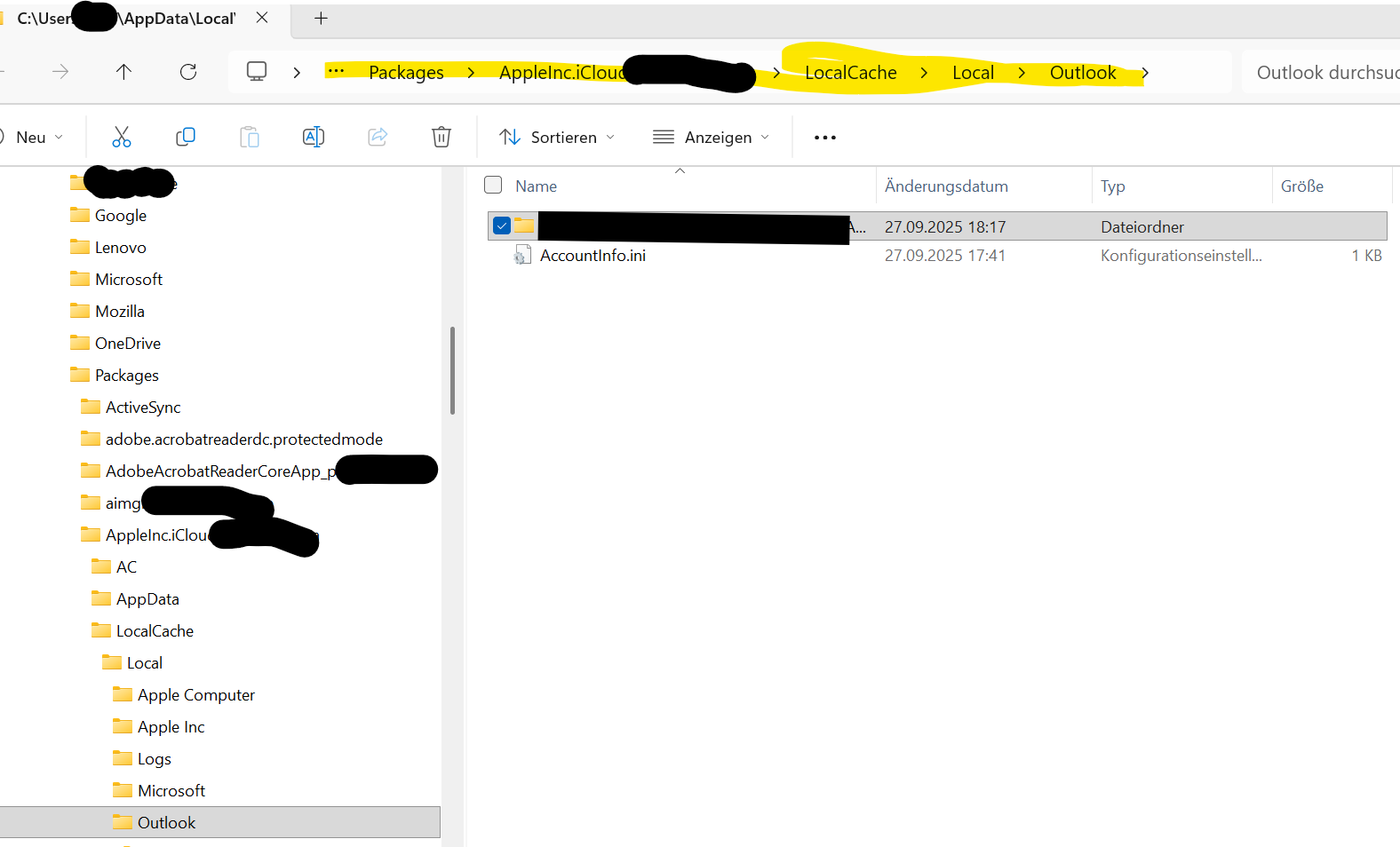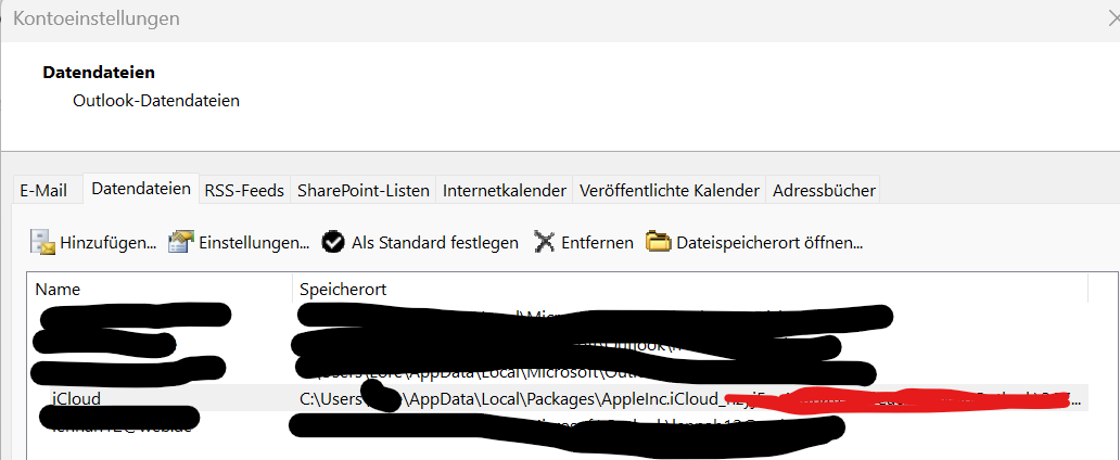 Vorher war es so, dass in Outlook unterhalb der mailadresse eine Ordner lag mit dem Namen "ICLOUD" und in den Optionen war ein "iCloud-Outlook-Add-In aktiv.