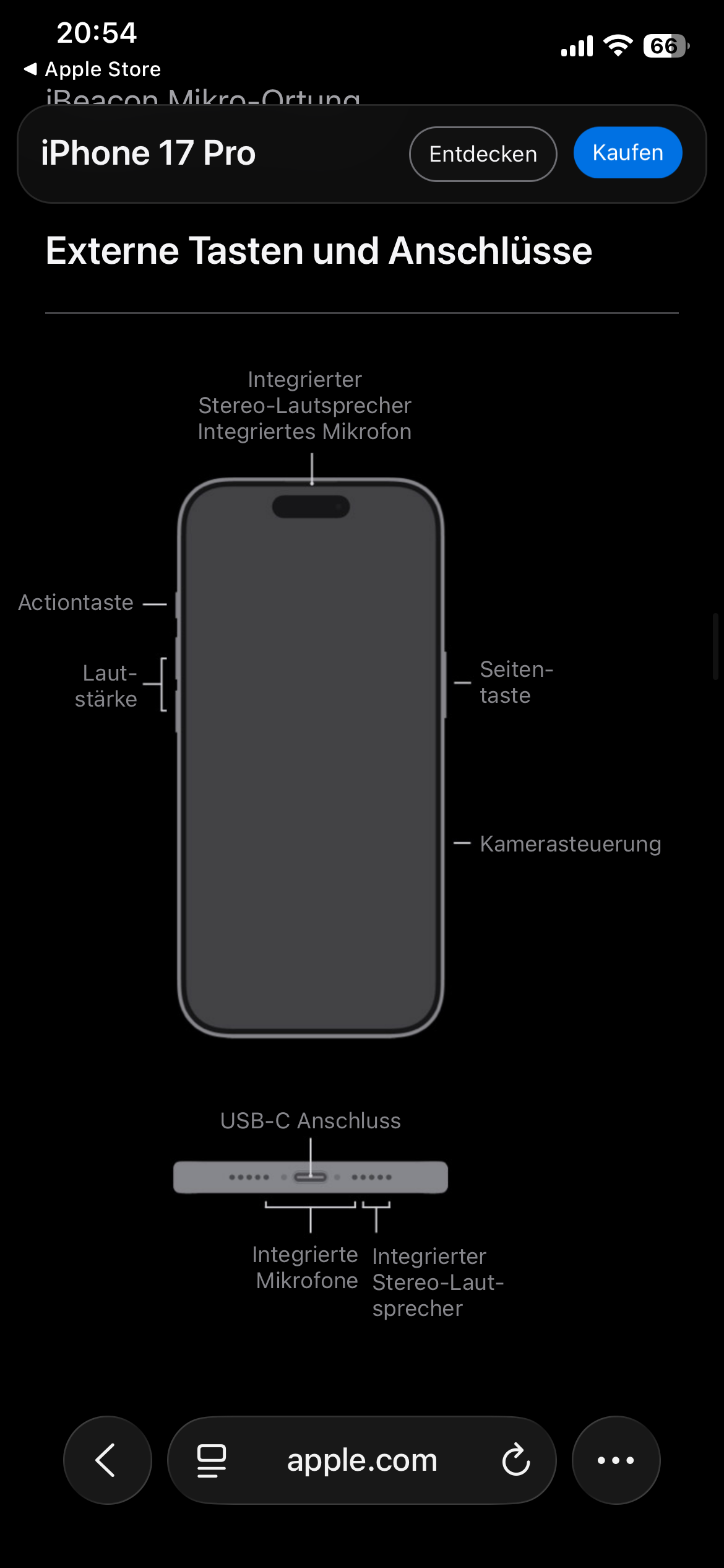 Der untere Lautsprecher auf der Unterseite ist dieses Jahr bei dem iPhone 17 Pro (Max) auf der linken Seite platziert. Es ist alles korrekt und muss so sein.
