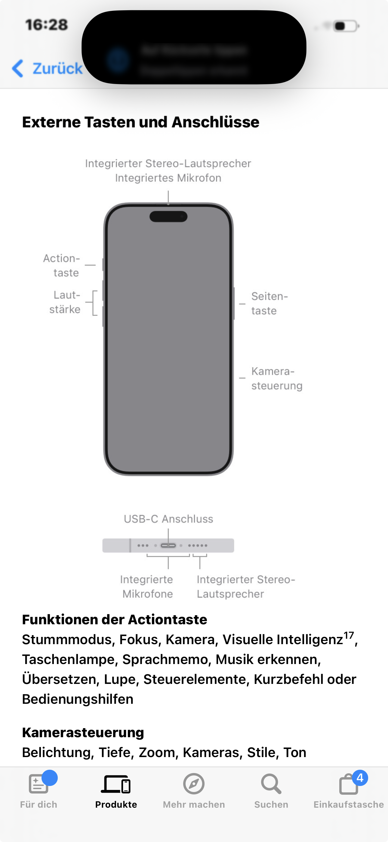 Für echten Stereoklang nutzt das iPhone die Kombination aus unterem Lautsprecher und dem Hörmuschel-Lautsprecher oben am Display. Das bedeutet: Dein Gerät verhält sich völlig normal, auch wenn es so aussieht, als ob „eine Seite stumm“ wäre.