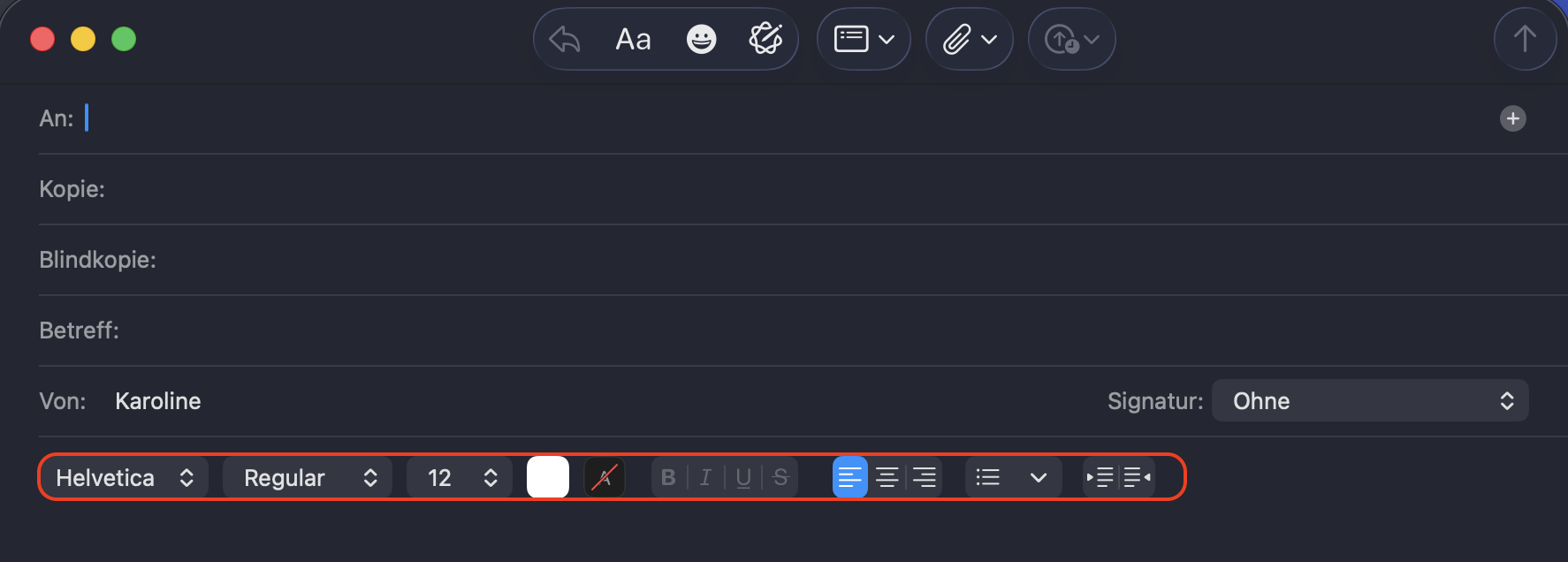 Schreibst du hingegen eine Mail, hast du natürlich auch die Möglichkeit, die Schriftart und das Aussehen zu ändern.
