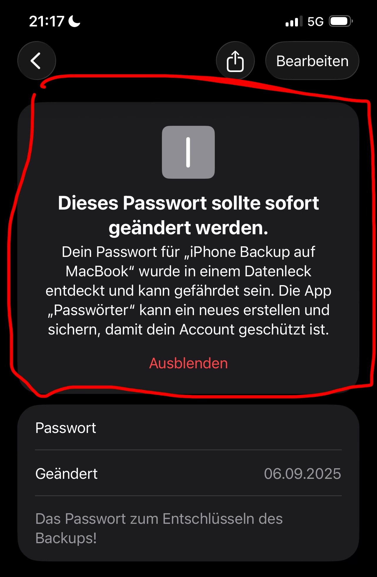 Mist das jetzt gefährlich? Es ist nur ein selbstgespeichertes Passwort für das iPhone Backup auf meinem MBP (damit alle Daten aufgenommen wurden)