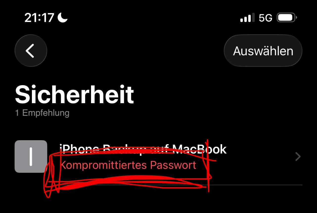ich bin vor kurzem mal so in die Passwörter App gegangen und haben dann ein Problem im Sicherheitsbereich gesehen: