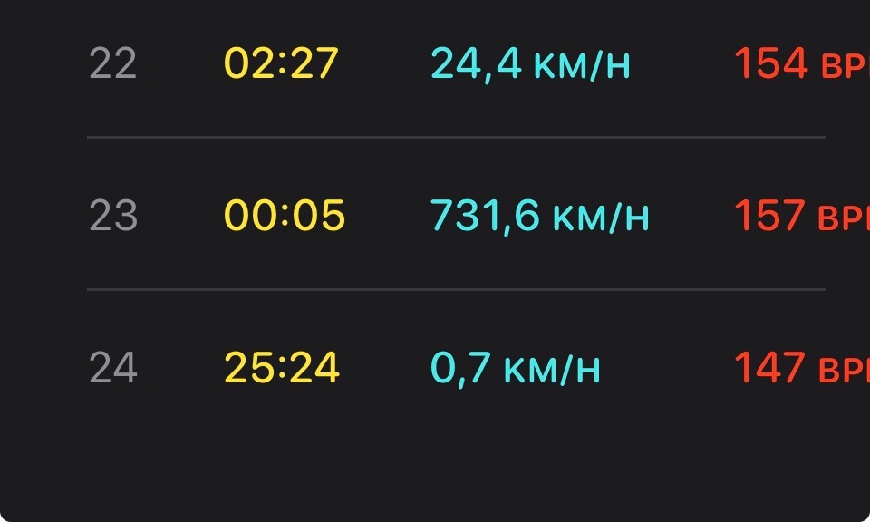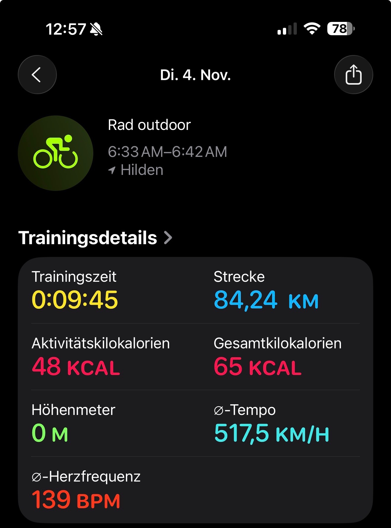 Leider sind die Werte aufgezeichneten Werte komplett falsch. Meine Durchschnittsgeschwindigkeit betrug so angeblich über 400km/h und ich bin in nicht mal 10 Minuten fast 80km gefahren.