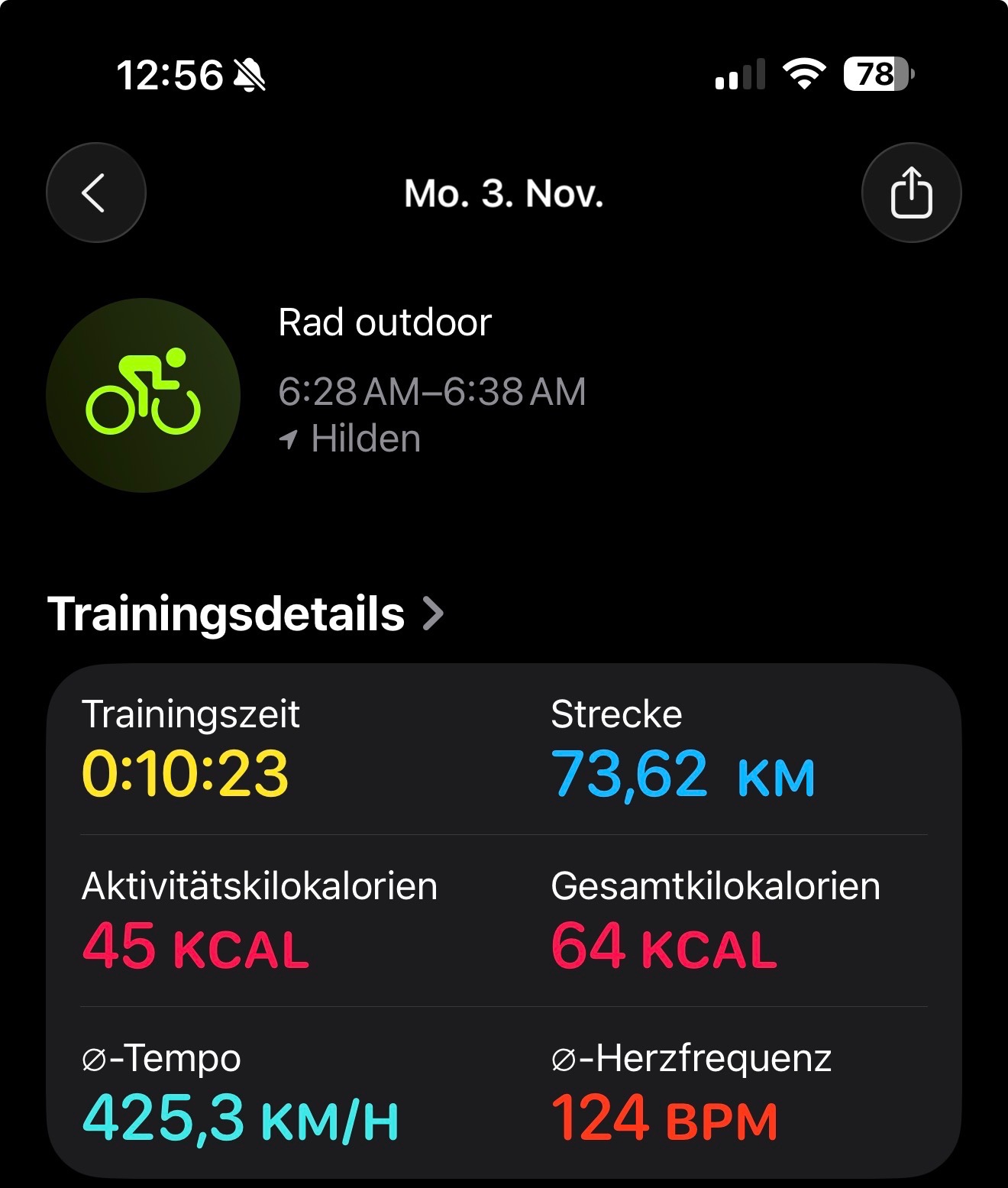 mich fahre mit dem Fahrrad circa 2km zum Bahnhof und habe einen AirPod Pro 2 im Ohr. Nach circa 1km kommt die Ansage „Du scheinst zu trainieren…“ Über die Geste Nicken bestätige ich die Aufzeichnung des Trainings.