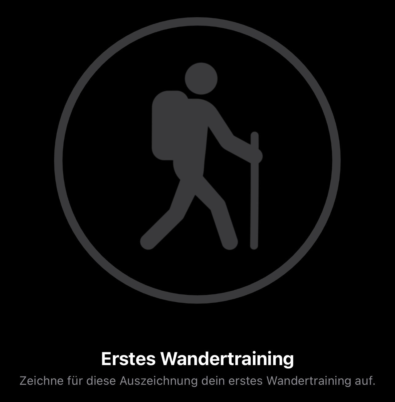 Ich nutze inzwischen eine Apple Watch Ultra 2 und habe auch mit dieser bereits Wandertrainings im „Wandern“-Modus aufgezeichnet, inklusive Höhenmetern und Dauer. Trotzdem erscheinen die entsprechenden Auszeichnungen nicht in der Fitness-App.