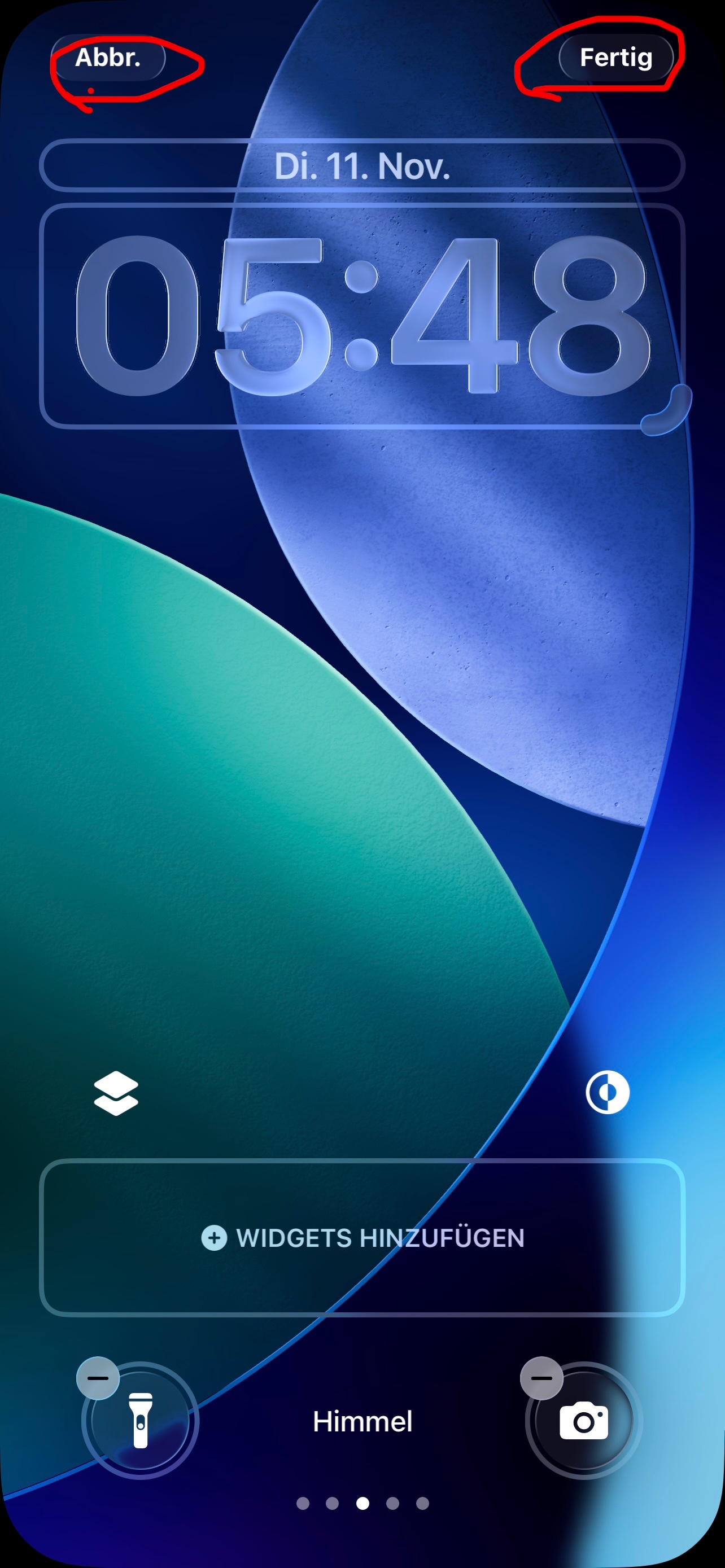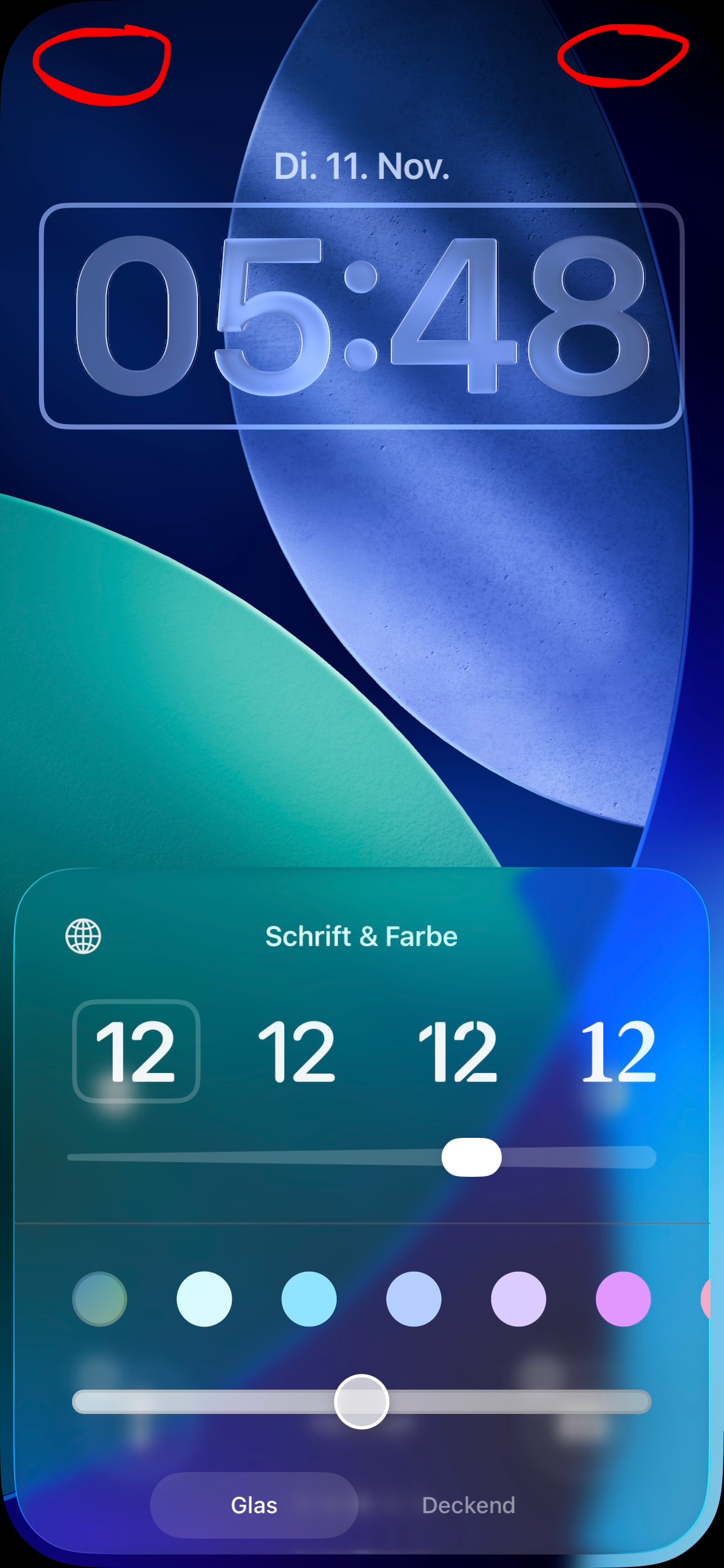 Wenn ich im Sperr-Bildschirm die Anzeige der Uhrzeit ändern möchte, fehlt im Änderungsblock das "x" zum bestätigen. Ich kann zwar Farbe, Schriftart und Glas/Deckend ändern - aber nicht speichern!