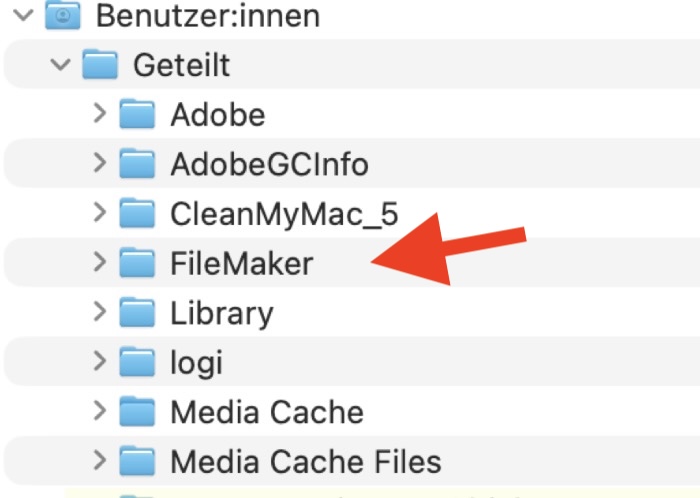 meist du die Ordner, die unter Geteilt ganz oben erscheinen? unter anderem FileMaker, CleanMyMac, usw?