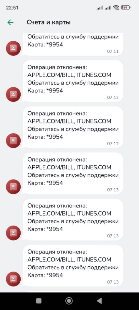 A total amount of approximately 16,500 KGS was unauthorizedly charged from my mother’s card by APPLE.COM/BILL. The charges were made multiple times in different amounts — 19 USD, 12 USD, 7 USD, etc., over a short period of time.