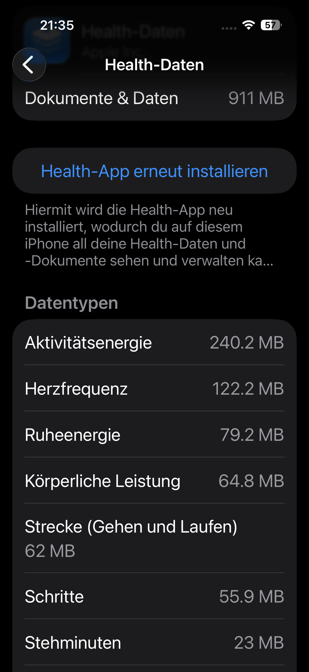 - Selbst das manuelle Löschen im Bereich „iPhone Speicher“ (Settings → Allgemein → iPhone Speicher → Health) bietet keine Option für das endgültige Entfernen dieser Daten.