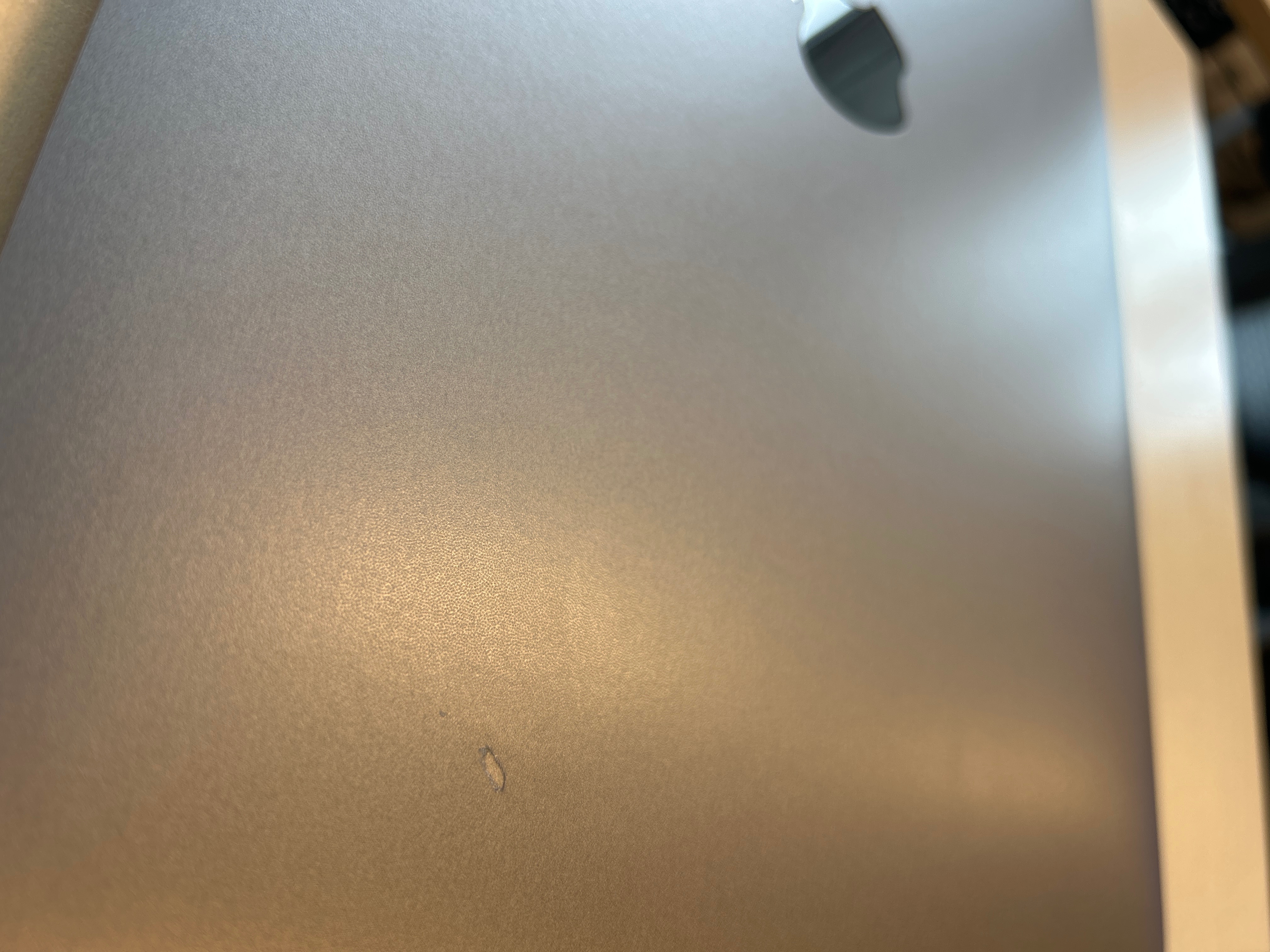 mich hab das Mac Book gebraucht gekauft und bin mir nicht sicher ob die Stelle eine Macke ist oder eine klebrige Stelle von einem Sticker oder so…