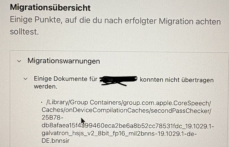ich habe gerade stolz meine Daten mit dem Migrationsassistenten vom "alten" Macbook auf das neue übertragen, und nachdem er einige Neustarts hingelegt hat und nicht direkt "bereit zur Nutzung" war, kam diese Meldung.