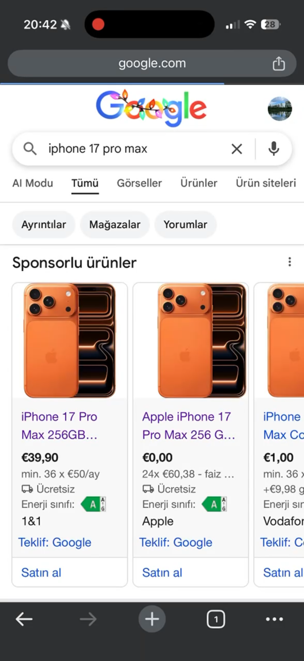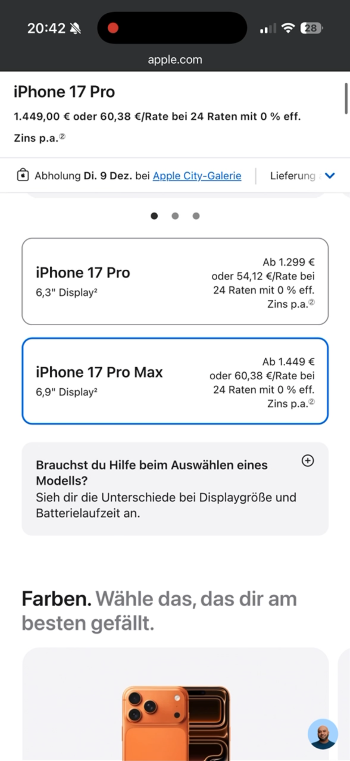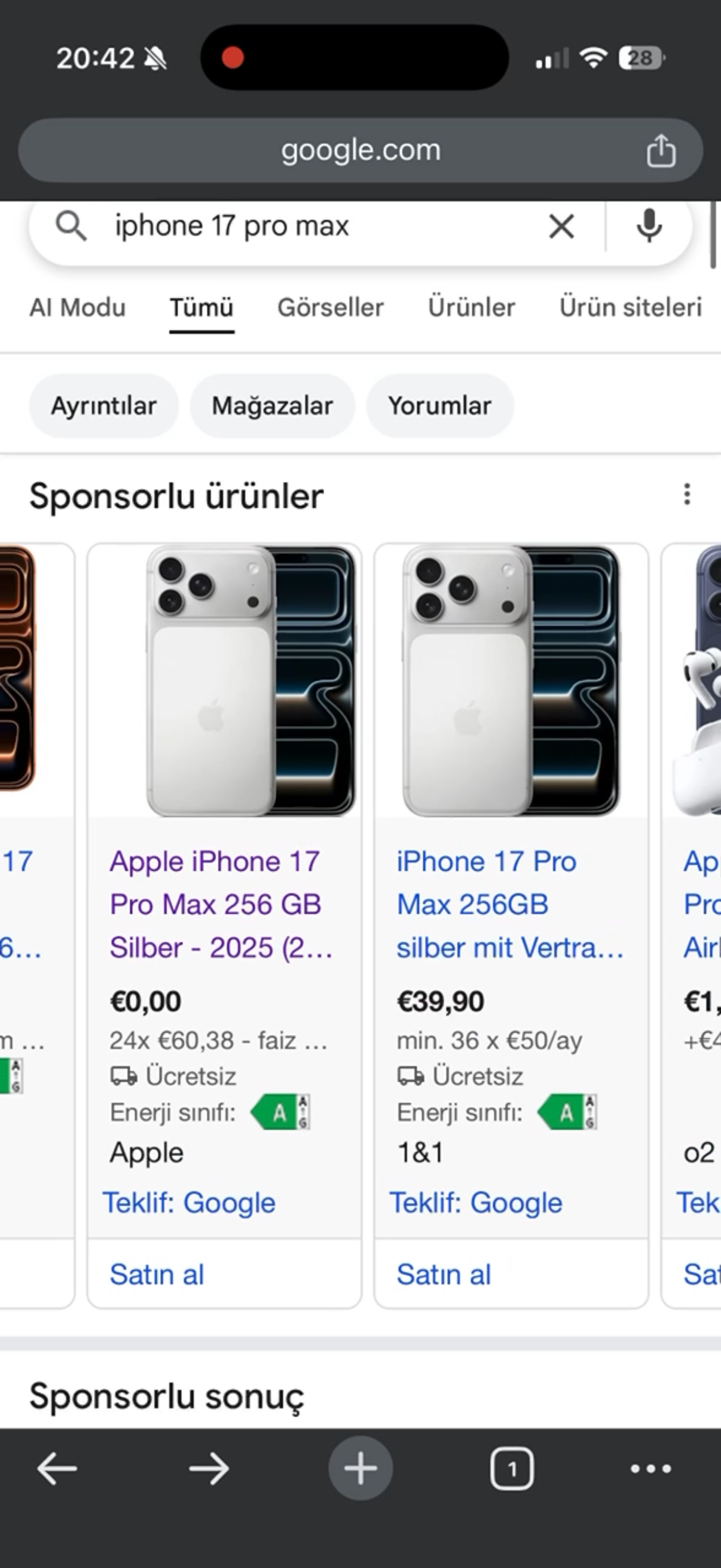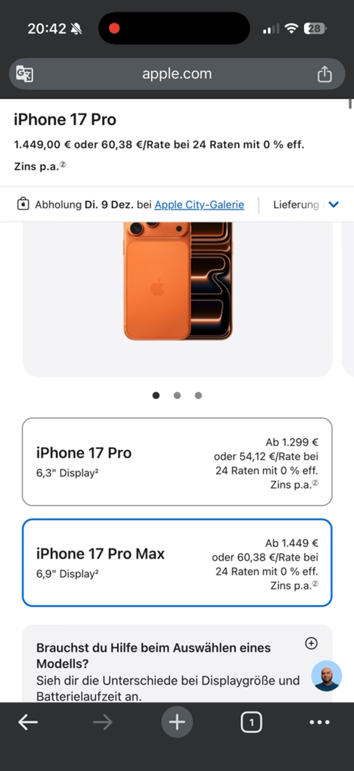 ich habe heute über Google nach „iPhone 16 Pro Max“ gesucht. Dabei wurde mir eine Anzeige für die offizielle Apple Webseite angezeigt, in der ein Preis von 0 € genannt wurde.