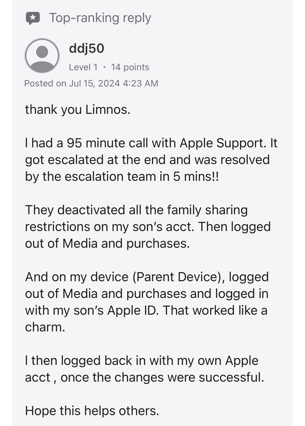 Der Apple Support verweist als „Lösung“ darauf, dass man die Kinder-Apple-IDs löschen und komplett neu anlegensoll.