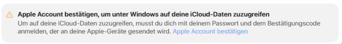 Bei iCloud am PC erscheint die Aufgabe "Apple-Account bestätigen", aber trotz wiederholter Bestätigung wird diese Anmeldung nicht akzeptiert