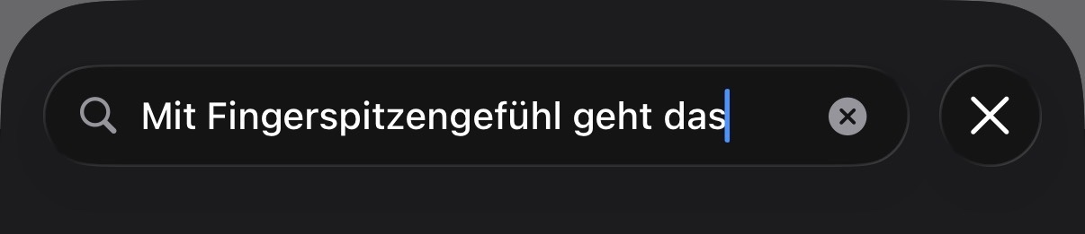 Ich probiere es seit Tagen. Das Suchfeld erscheint wenn ich nach unten wische und verschwindet sofort, bevor ich es ansteuern kann