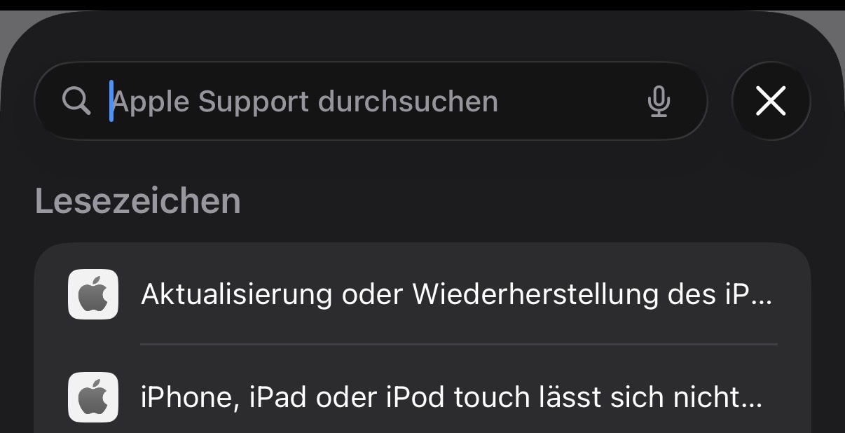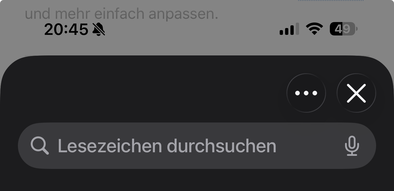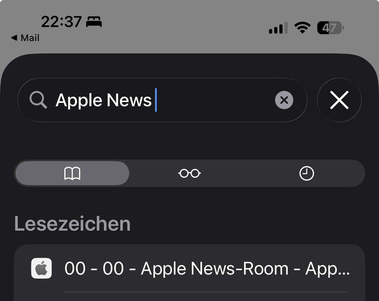 Mit IOS 26.1: In der Favoriten / Lesezeichen Liste erscheint kein Suchfeld mehr, wo ich gezielt nach einem Eintrag suchen könnte.
