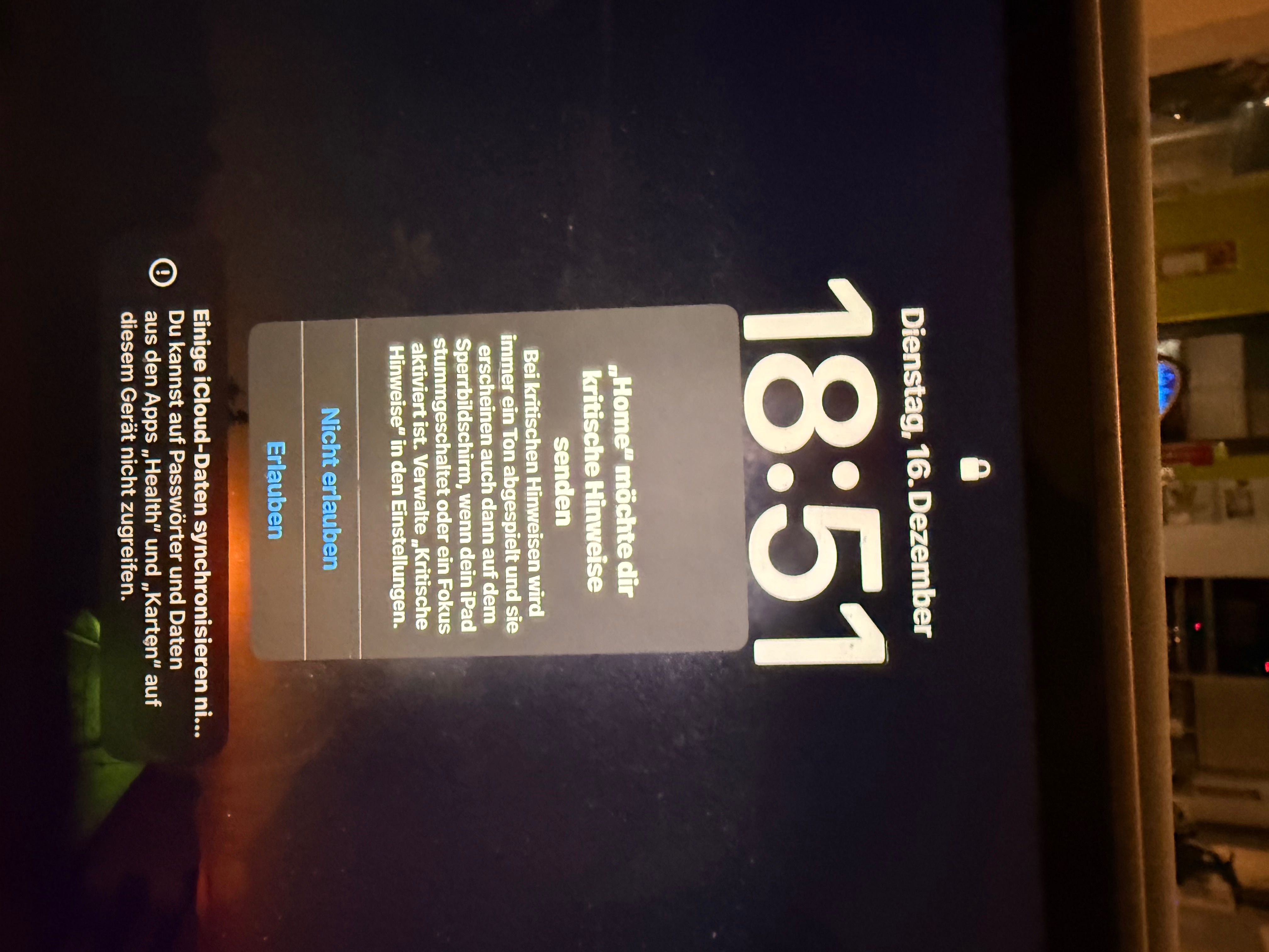 Auf dem IPad erscheint „Home“ möchte dir kritische Hinweise geben….